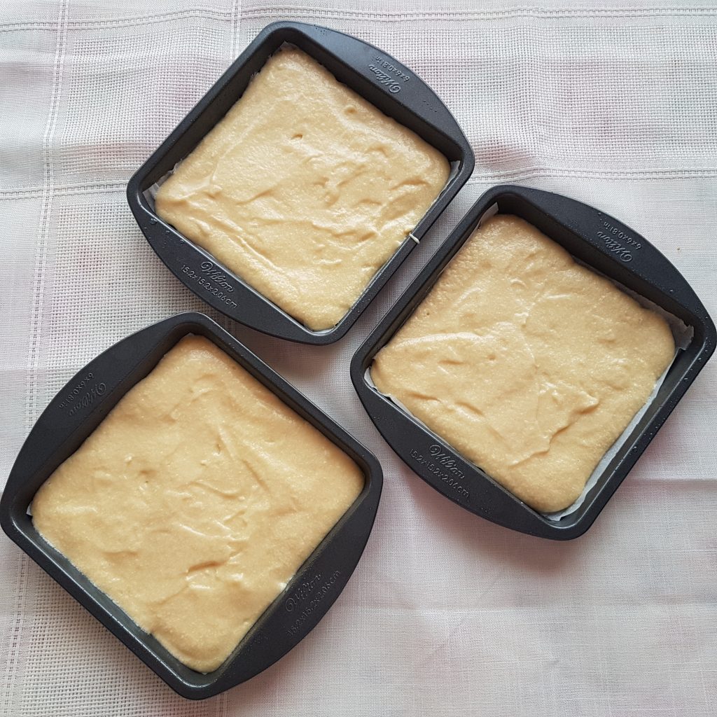 Започвам с блата. Фурната се загрява до 180 градуса.Тавичката се покрива с хартия за печене и стените се намазват с малко мазнина, за да не залепне пандишпана. По принцип не пресявам брашното за сладкиши, защото нямам изграден навик, но в случая е задължително да се пресеят сухите съставки (брашното , заедно с бакпулвера, ванилията и щипка сол), за да набухне правилно пандишпана. В  купа разбиваме до пухкава смес  омекналото масло и захарта  с миксер. Последователно добавяме в тази смес яйцата и след всяко разбиваме за кратко до гладкост. Накрая добавяме прясното мляко и сухата смес на порции, които редуваме, и разбъркваме с телена бъркалка.Получава се доста гъста смес, която изсипваме в тавичката, добре заравняваме с шпатула и печем около 30 минути на 180 градуса (или до суха клечка).Изпеченият  пандишпан изваждаме от фурната и оставяме  малко да се охлади в тавичката. След това го объщаме върху решетка, отделяме хартията за печене и изчакваме добре да изстине. Увиваме го добре (но не твърде стегнато) в домакинско фолио за свежо съхранение и оставяме върху подходящ поднос  в хладилника за 1 нощ. Това е необходимо, за да се изстуди добре и по-лесно да се нареже след това на пастички.