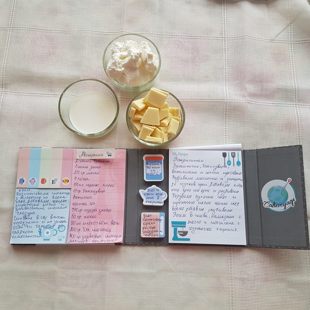 За да приготвим крема начупваме белия шоколад на малки парченца, прибавяме млякото и на водна баня го разтопяваме като бъркаме, за да не се карамелизира шоколада.Готовата смес оставяме да се охлади. След това добавяме кондензираното мляко и разбъркваме до хомогенност с телена бъркалка. Накрая на части добавяме заквасената сметана, като разбъркваме (но не разбиваме) с телена бъркалка. Ако сметаната не е достатъчно гъста я изцеждаме в марля предварително. Готовият крем оставяме в хладилник през нощта да се охлади и стегне.