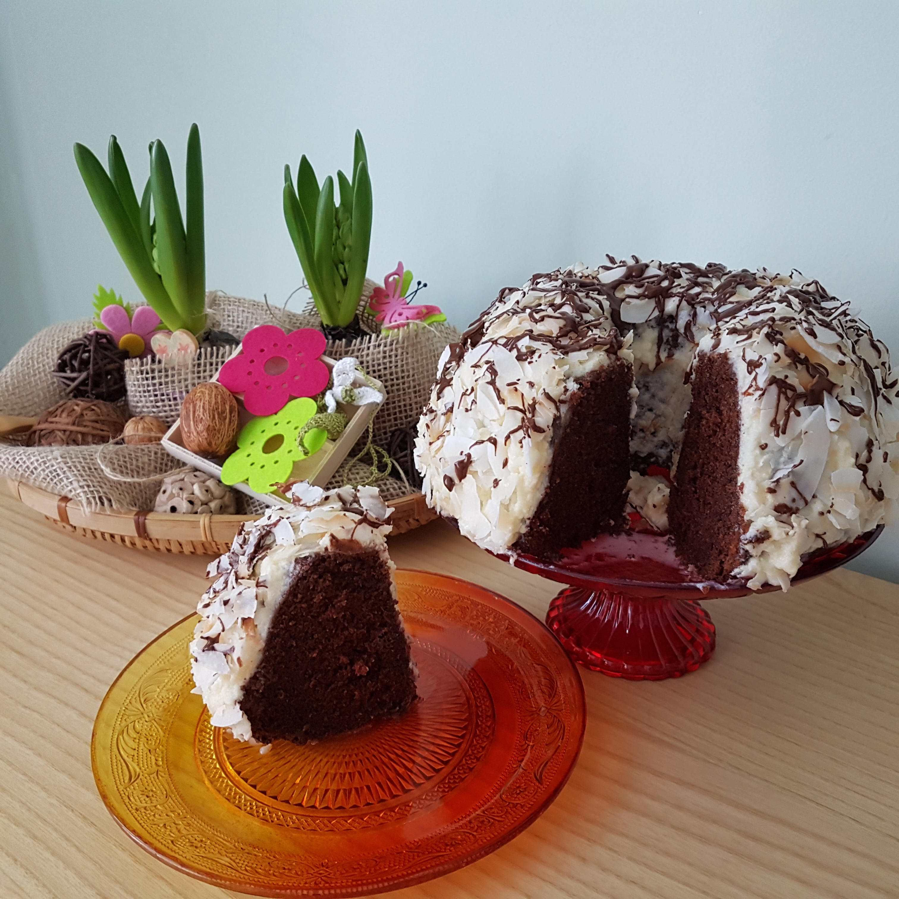 Това беше от Американска Самоа. Много шоколадов и сочен десерт. Кокосовият чипс те пренася в островната държава и започваш да мечтаеш за пусти плажове, красиви корали и между тях пъстроцветни риби, екзотични плодове и усмихнати местни… Като се знам на мен наистина ми трябва малко да започна да мечтая за такава дестинация. Едно парче торта и вече кроя планове за далечни пътешествия. 🙂 Ако искаш и ти да се пренесеш там просто изпълни рецептата. Изисква малко усилие, но носи толкова наслада.