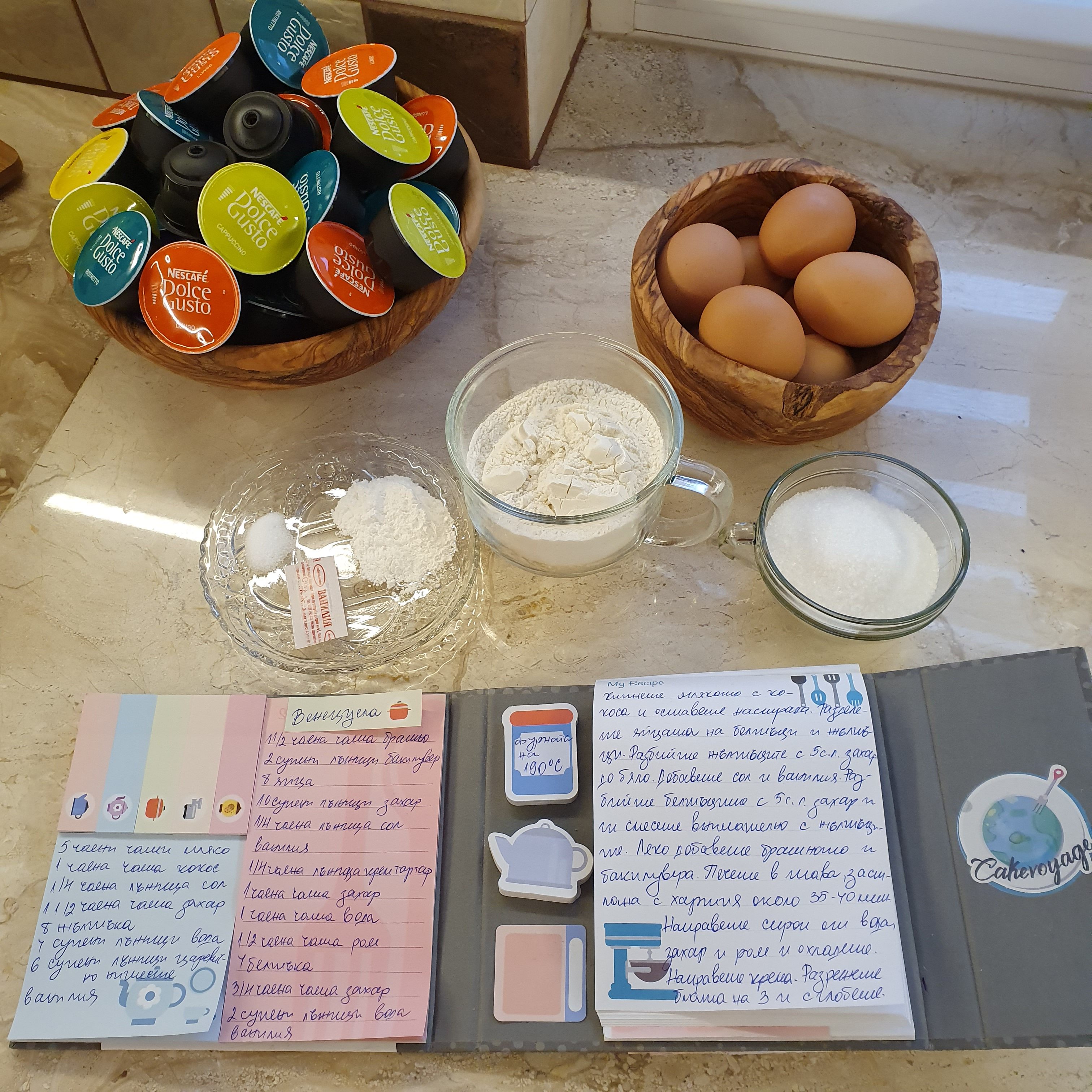 Коледните и новогодишни празници, които наближават, са придружени с вкусен хляб pan de jamon, навит на руло, напълнен с шунка и стафиди. А що се отнася до тортите – традиционен сладкиш е torta tres leches – торта с три млека. Вече ви я приготвях за Албания. Затова отпада. Друга често приготвяна торта във Венецуела е quesillo. Не я направих, защото ми прилича на крем карамел в тава. 🙂 Избрах за вас нещо друго – “Bienmesabe”. Леки блатове с кокосов крем и меренг за завършек. Ето и необходимите продукти:
