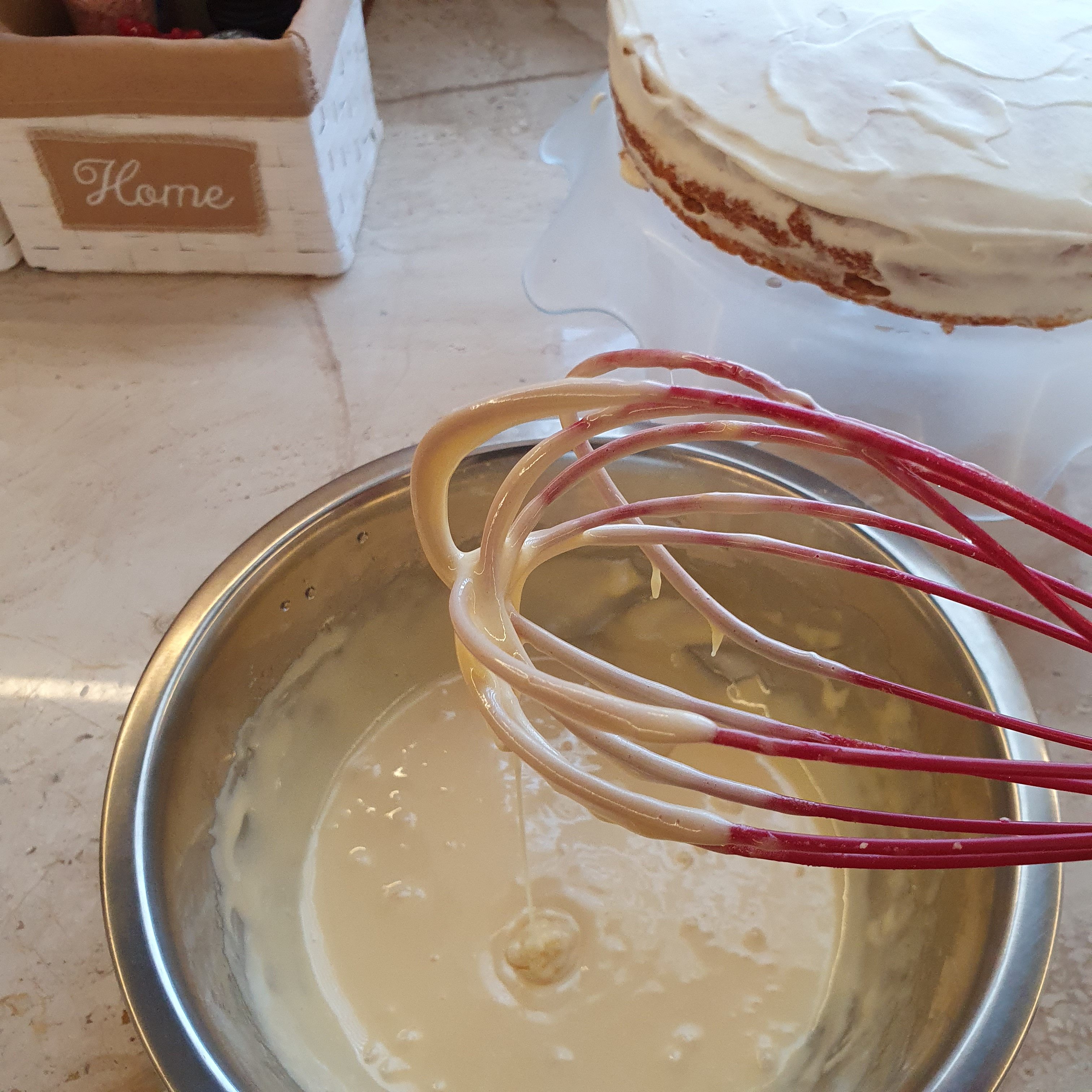Излейте глазурата върху тортата и загладете с шпатула. Въпреки, че е гъста имайте предвид, че ще се стече доста от тортата. Аз не подходих много умно и се наложи да мия хладилника. Според мен и половината количество е достатъчно за глазура. Така няма да има какво да се стича. 🙂