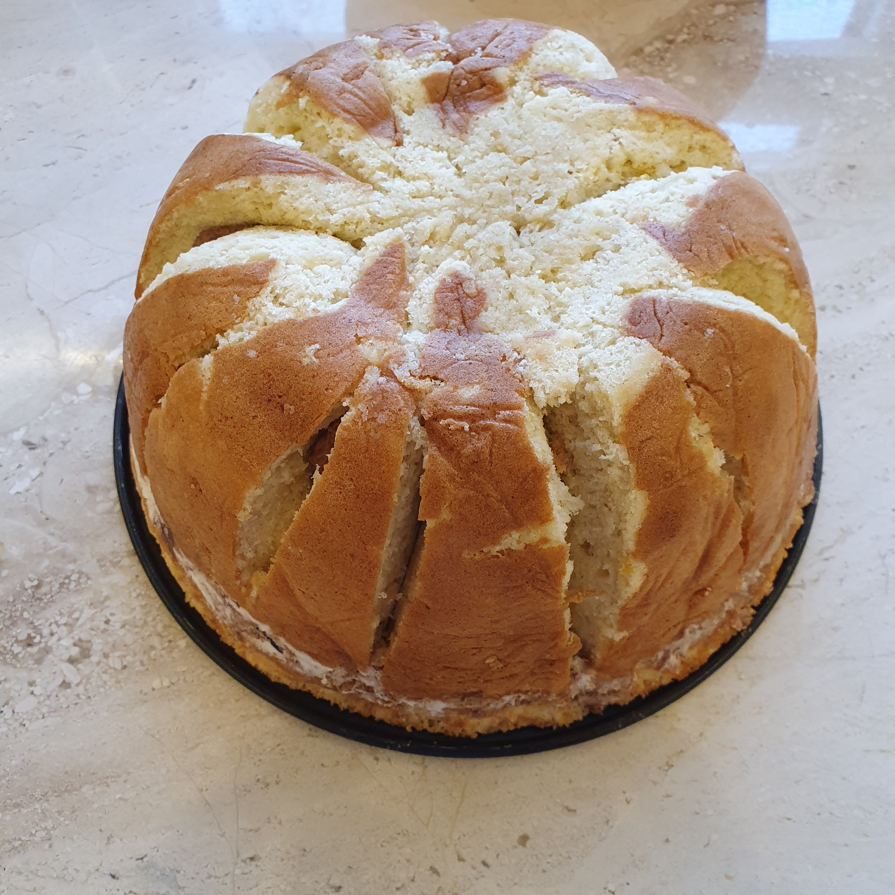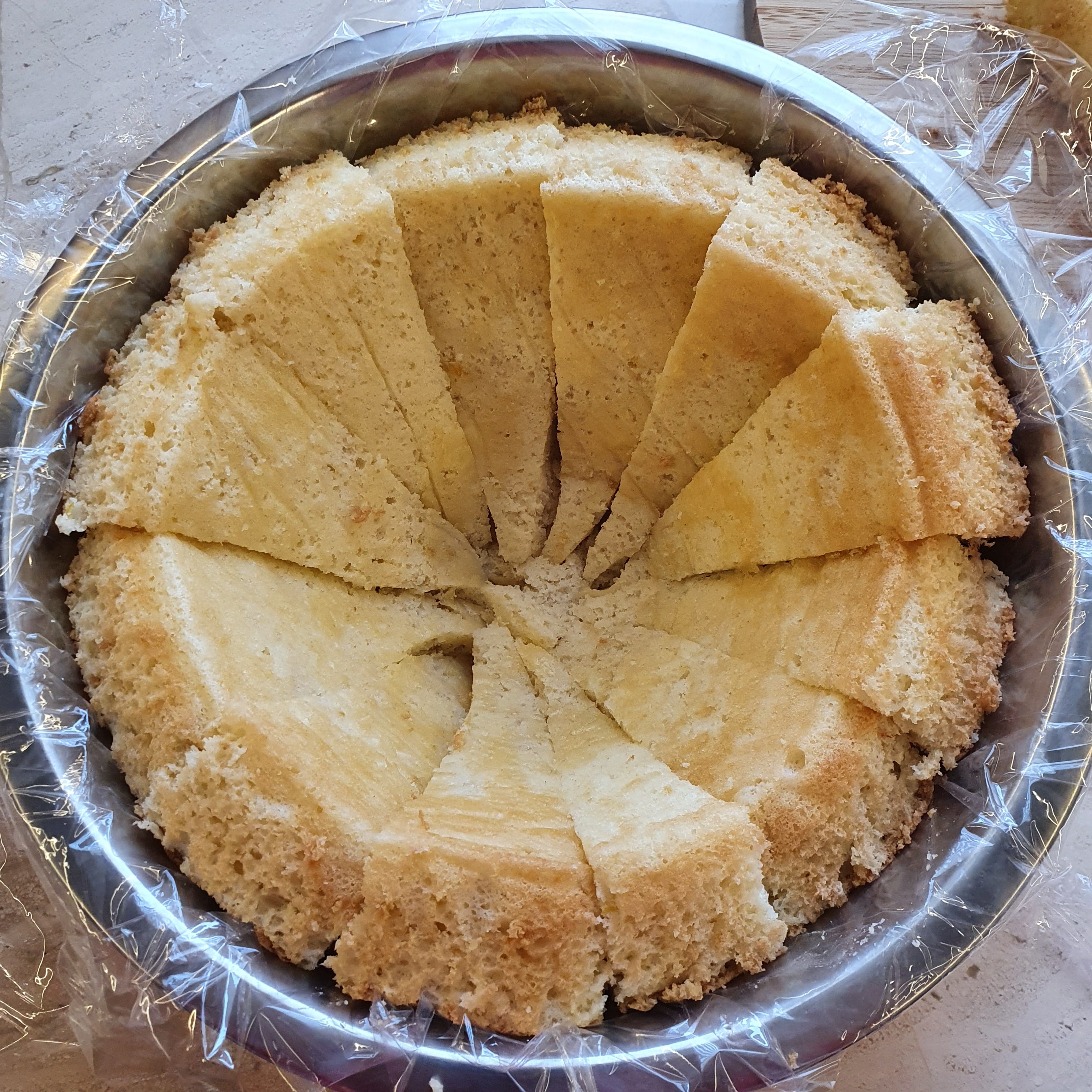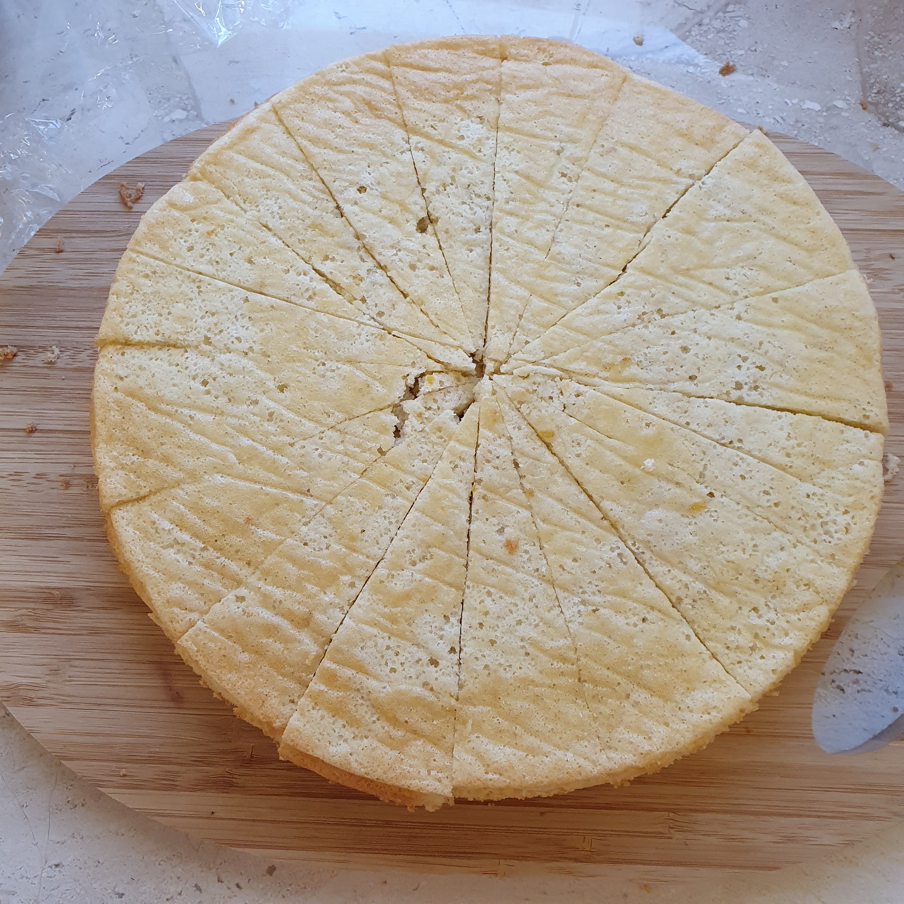 За да сглобим тортата разрязваме големия блат на 16 по възможност равни парчета.