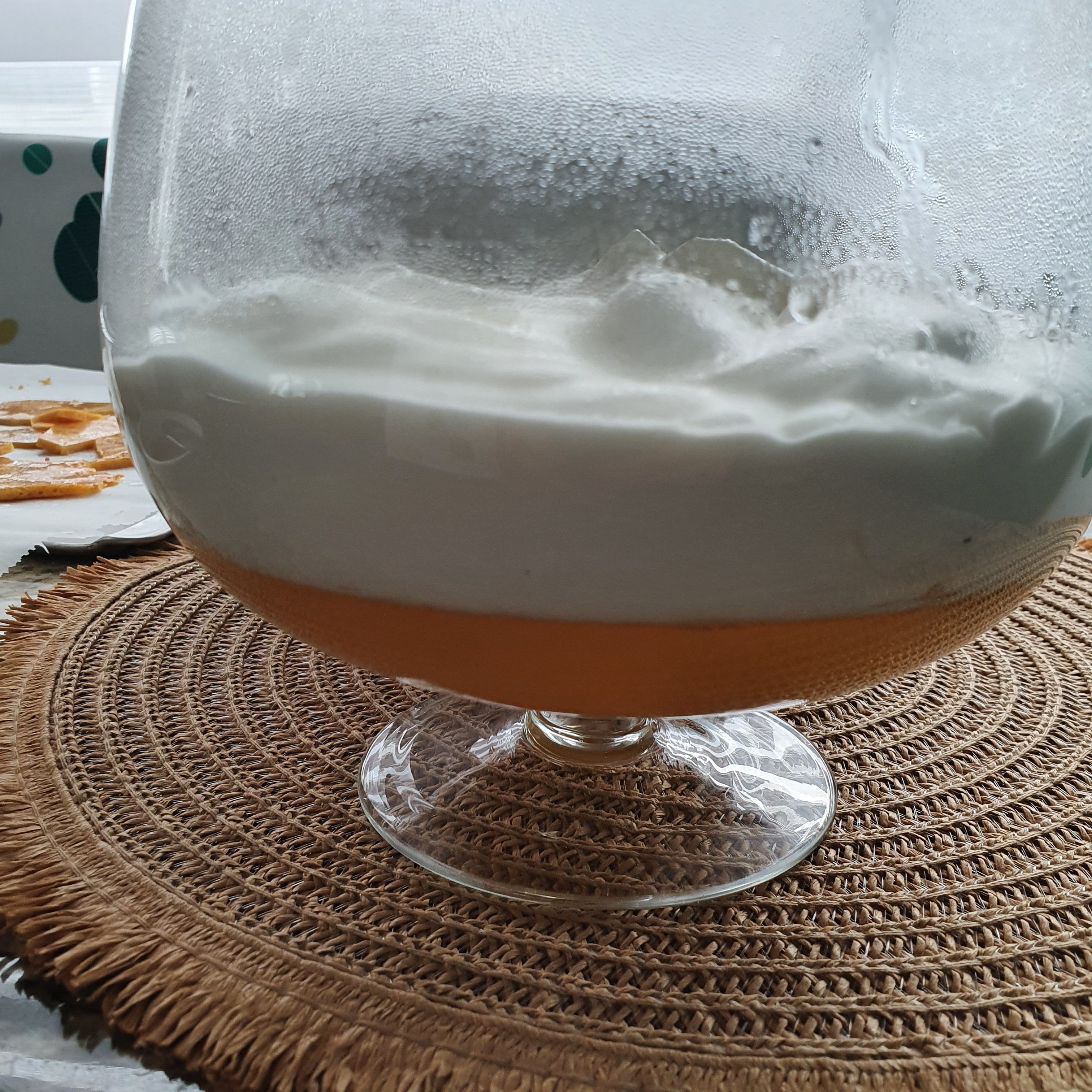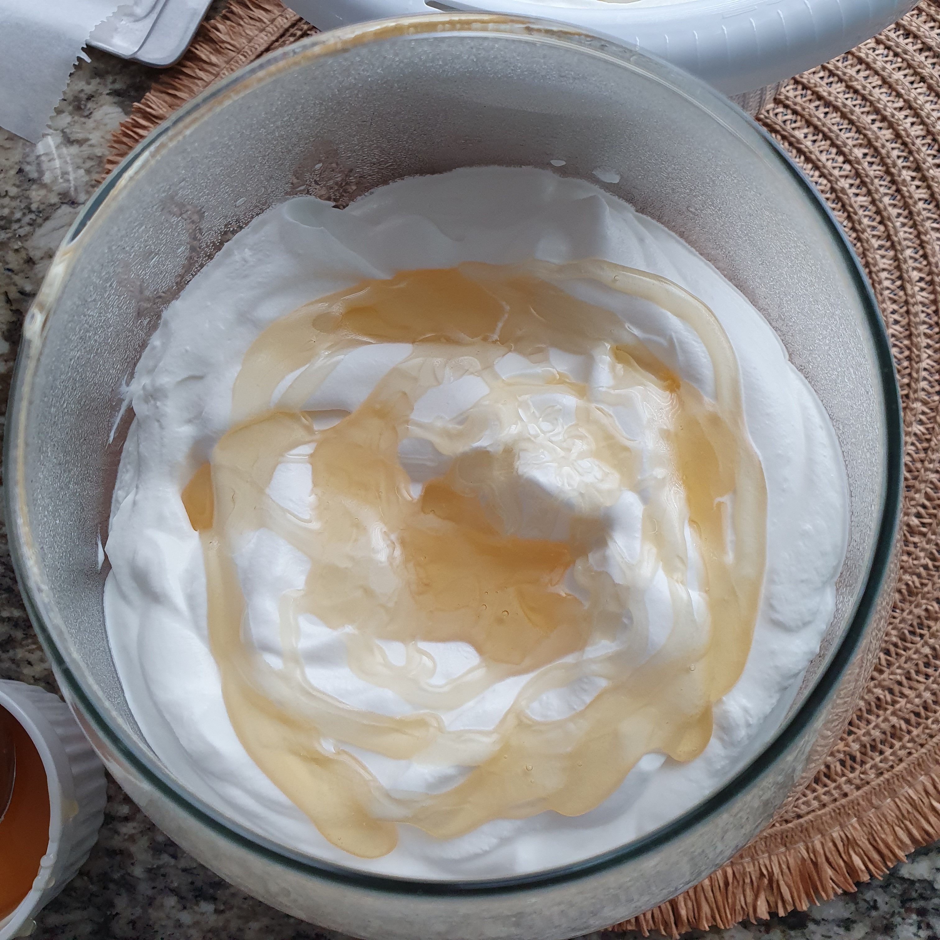 Заприлича на огромна чаша с бира. 😀 Върху крема се опитах да сложа равномерно 1/3 от меда, но заради формата на чашата не се справих идеално със задачата.