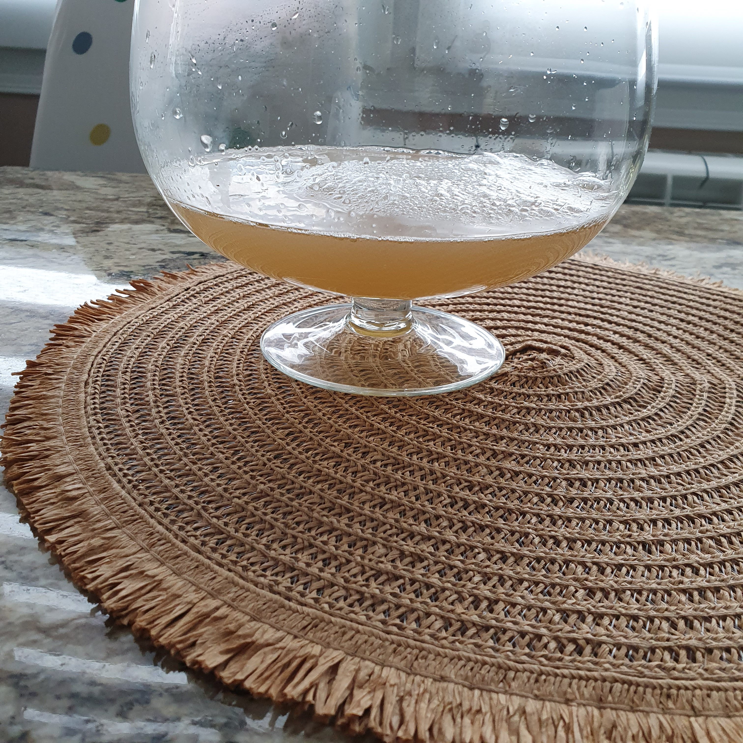 Започнах с приготвянето на слоя желе тъй като му трябва време да стегне – около 3 часа. В касерола сложих 1/3 от медовината и меда. Отделно накиснах желатина в студена вода да набъбне. Когато сместа на котлона беше се стоплила почти до кипене я махнах и добавих желатина. Разбърках докато стане хомогенно и прибавих и останалата медовина. Изсипах сместа в голяма купа/чаша и прибрах в хладилника да се охлажда.