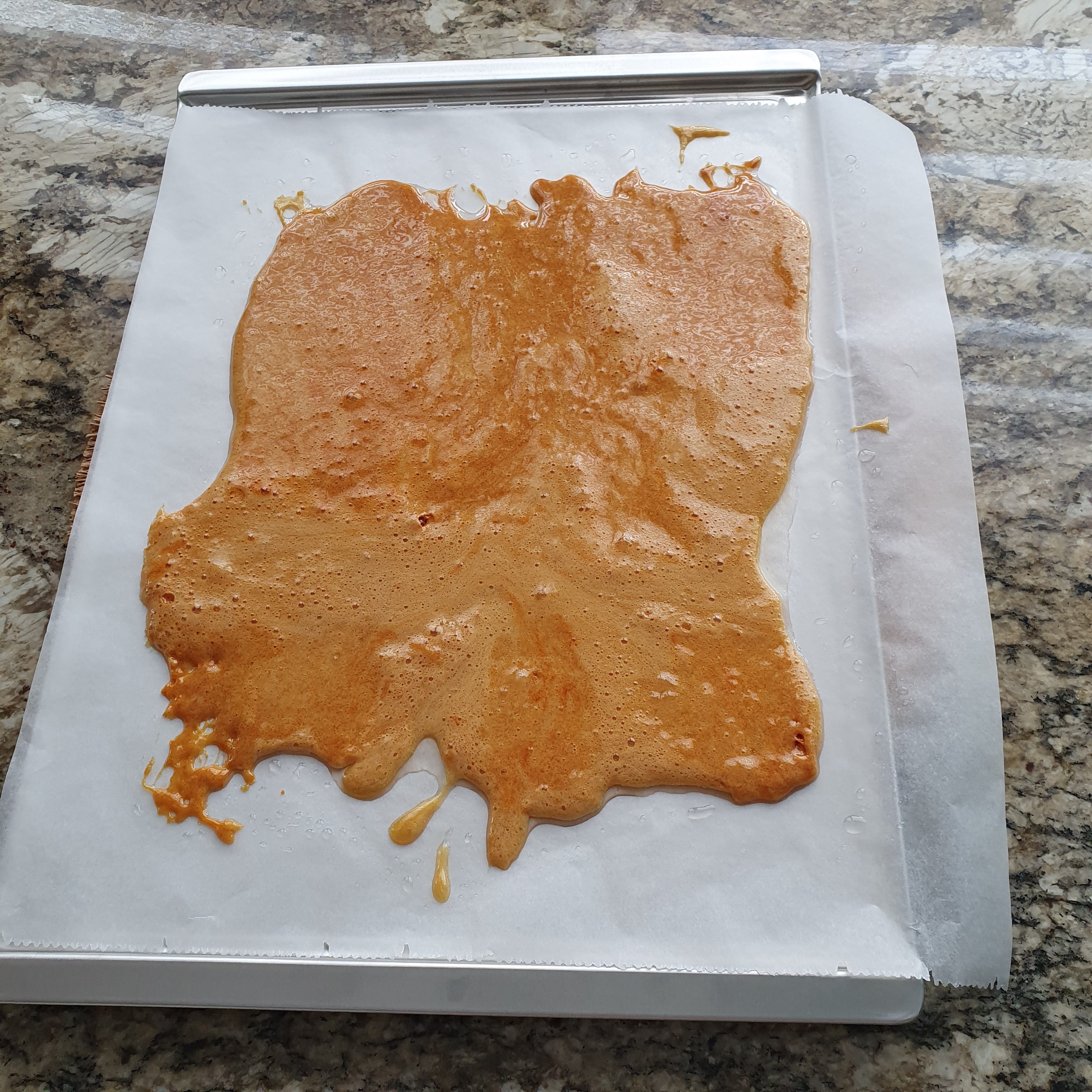 За да приготвя крокана в рецептата пишеше, че е необходим златен сироп. 😮 Аз такова нещо по магазините не съм виждала. Добре, че имаше рецепта в интернет. Сложих малко от захарта на котлона. Когато започна да се карамелизира сипах водата и останалата захар и намалих силата на котлона на 3 от 9 възможни. Разбърквах докато се стопи захарта, а след това варих около 50 минути. Накрая се получава нещо на консистенция като мед, но от захар. За да направя крокана сложих на котлона меда и златния сироп и го оставих докато захарта се стопи и всичко доби карамелен цвят. Дръпнах го от котлона и добавих содата за хляб внимателно, защото шупва и има опасност човек да се изгори. Застлах предварително тава с хартия за печене, която намаслих. След като сместа стана готова я изсипах бързо върху хартията като се опитах да направя максимално тънък слой. Мисля, че не ми се получи особено, но горе долу ставаше.