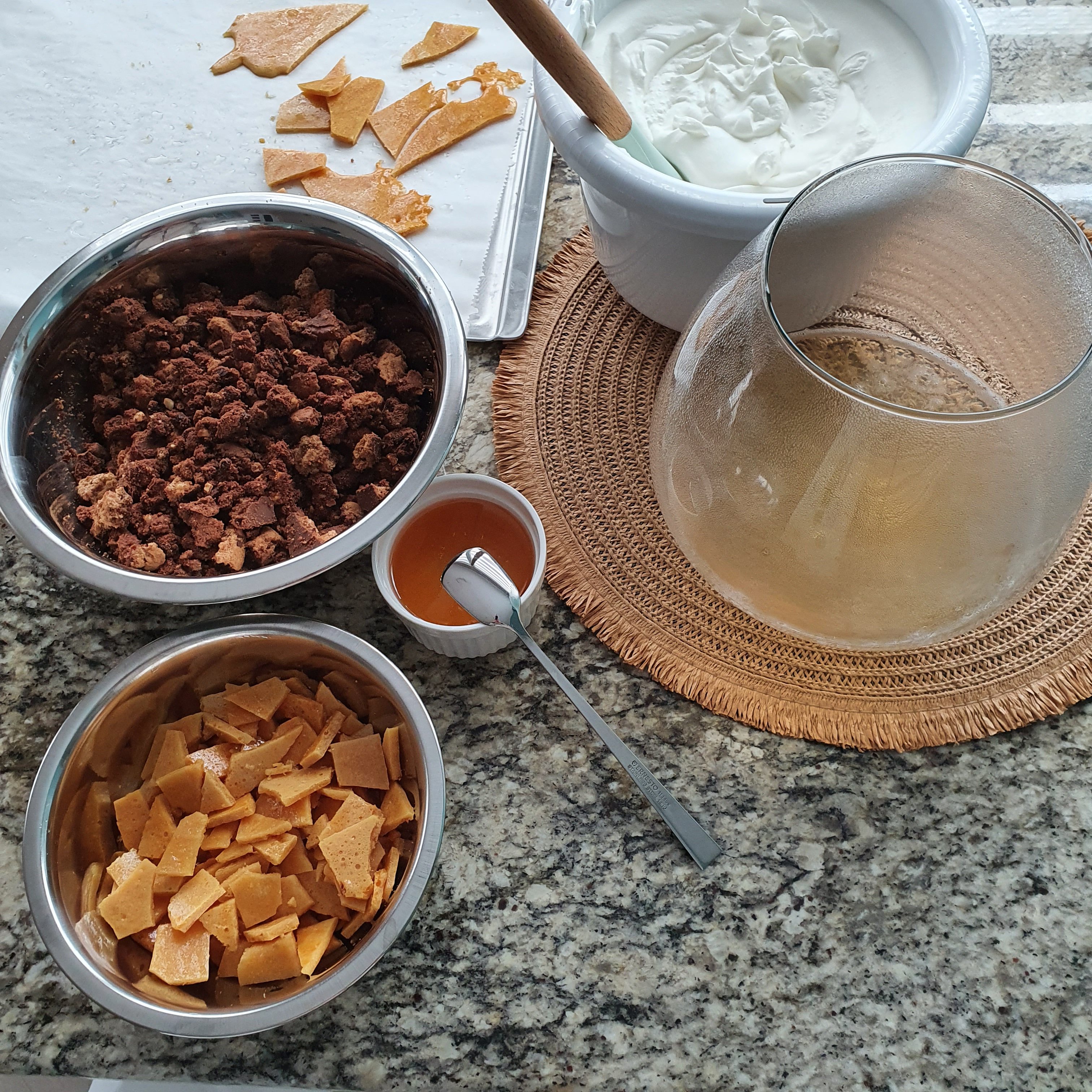 Сами разбирате, че няма как да пиша за бит, кухня и храна за тези острови, защото такава няма. Тортата, която избрах да направя е австралийска и е от типа любими на моето семейство – торта в чаша и по-точно вариант на “Трайфъл” – “Triple honey chocolate trifle”. Ето и необходимите продукти за нея: