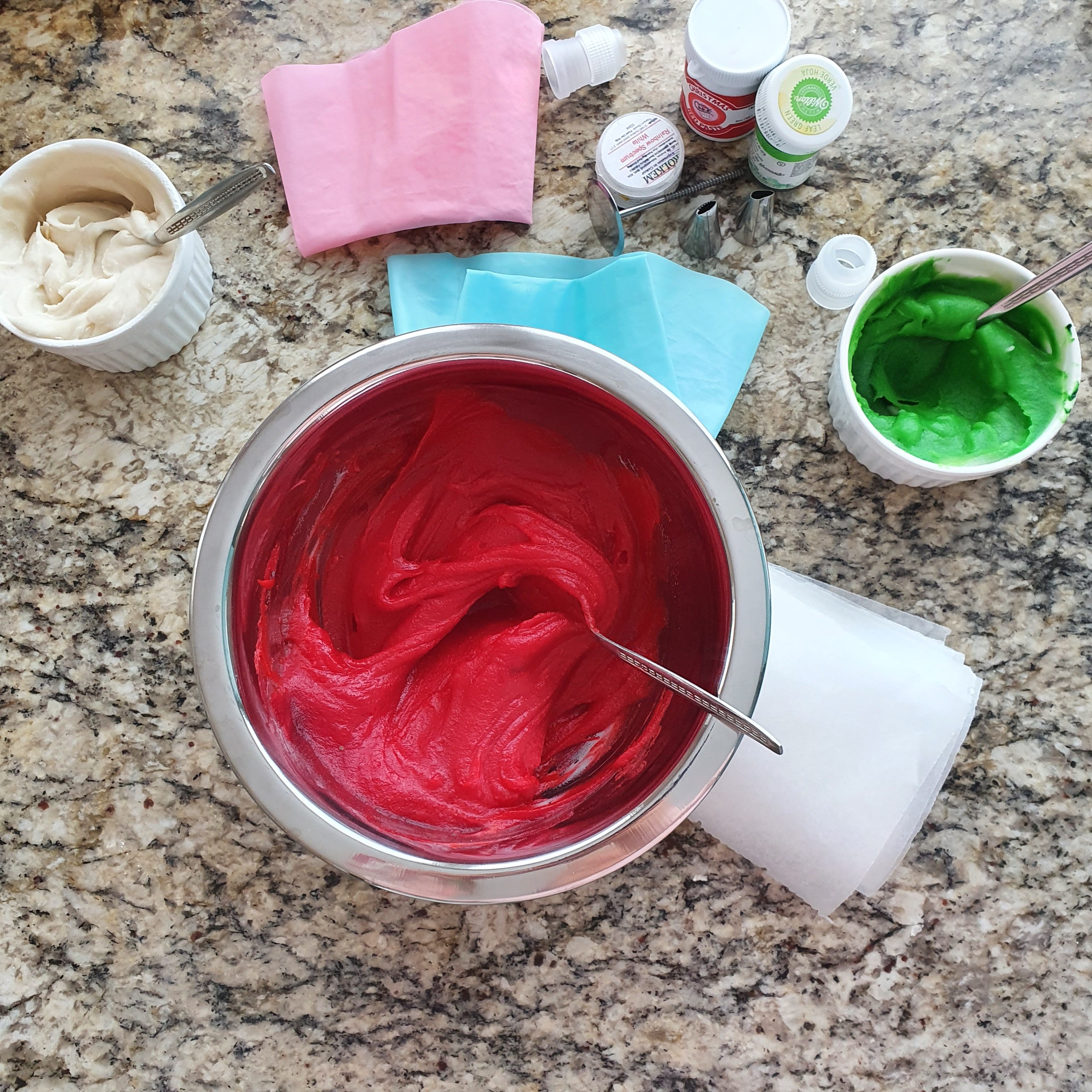 Оставих да се охлади и оцветих с хранителна боя. Избрах декорация в три цвята, защото вчера освен, че бях рожденичка, беше и националния празник на България. Затова цветовете на трибагреника ни бяха моя избор.