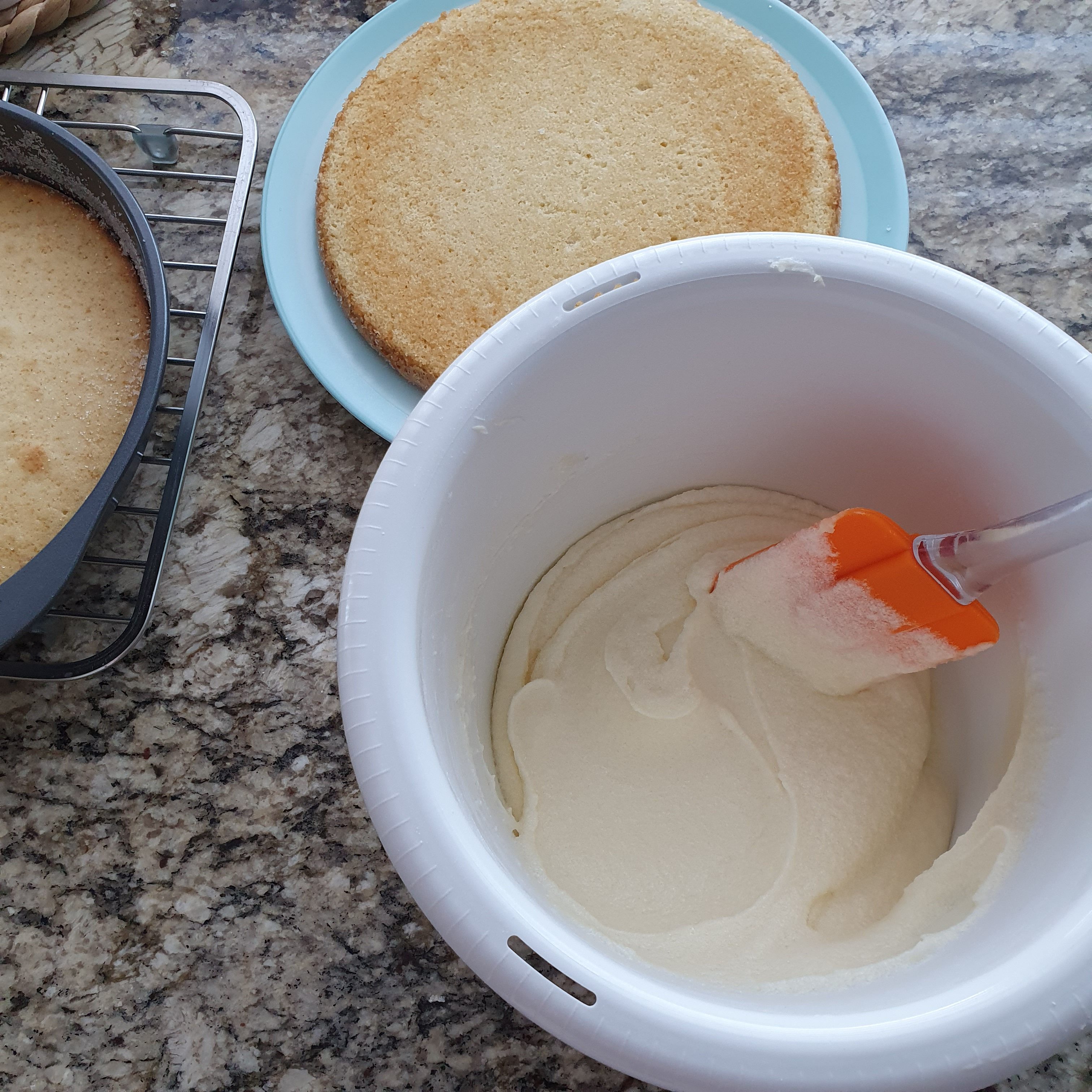 Тъй като захарта в крема ми се видя много реших да сложа и слой резени ягоди между блатовете. Добре се получи на вкус. 😉 Но реално в оригиналната рецепта липсват плодове.