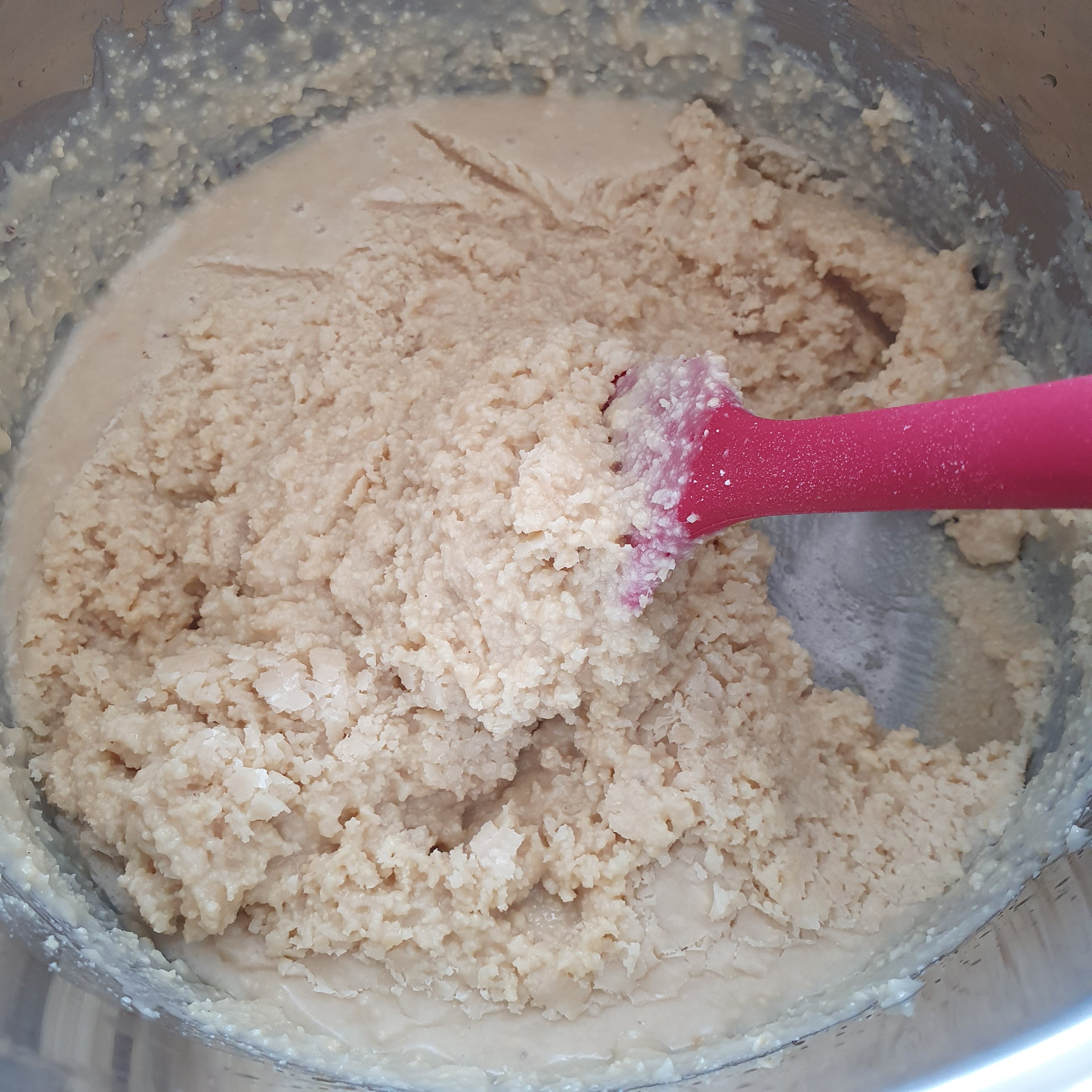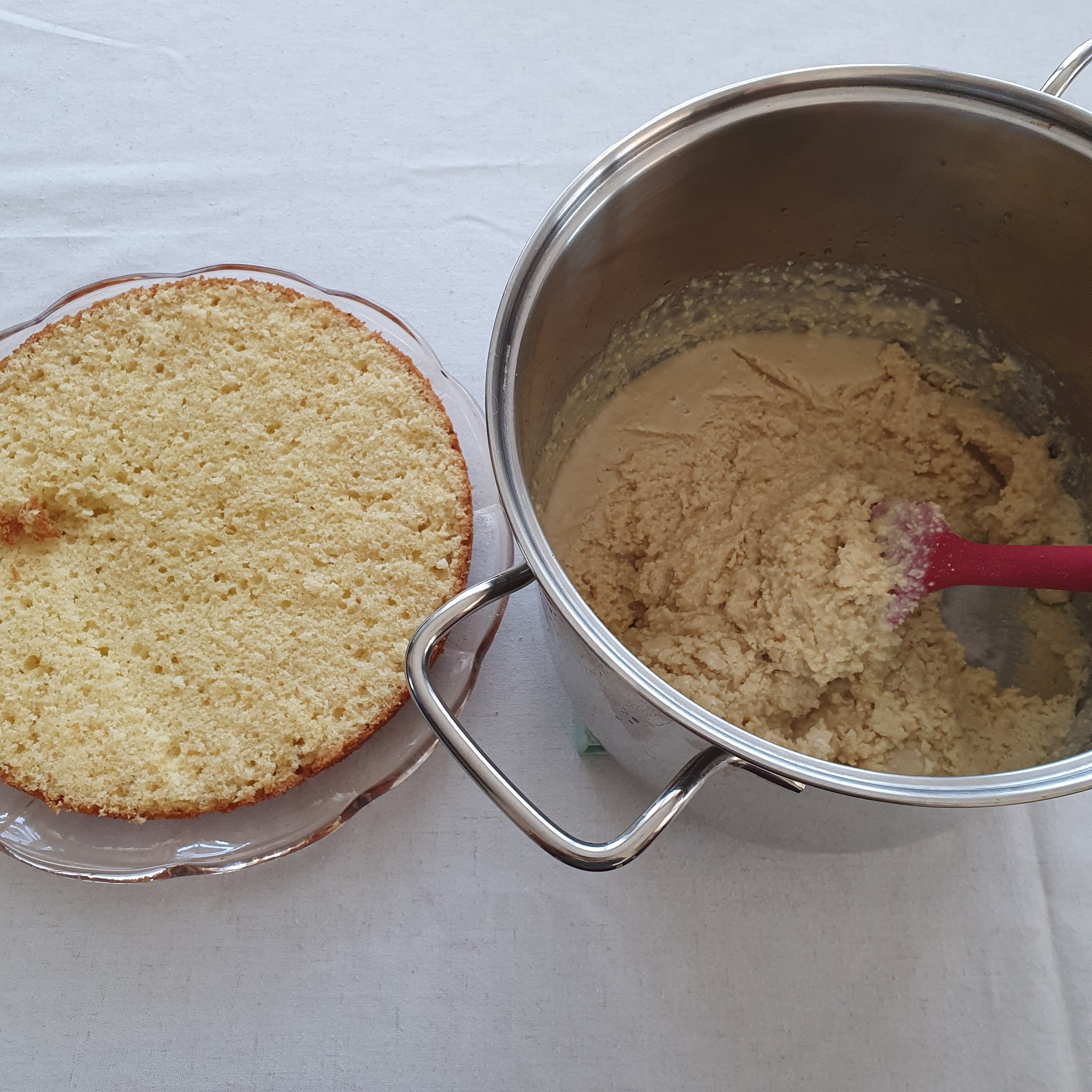 Бях прочела в рецептата, че крема не трябва да се охлажда прекалено. Аз му дадох 30 минути, които се оказаха много. Не го оставяйте за повече от 10 минути. Поправих грешката като го затоплих отново и леко се отпусна, но като цяло е труден за нанасяне, защото и блатовете са крехки. 🙂