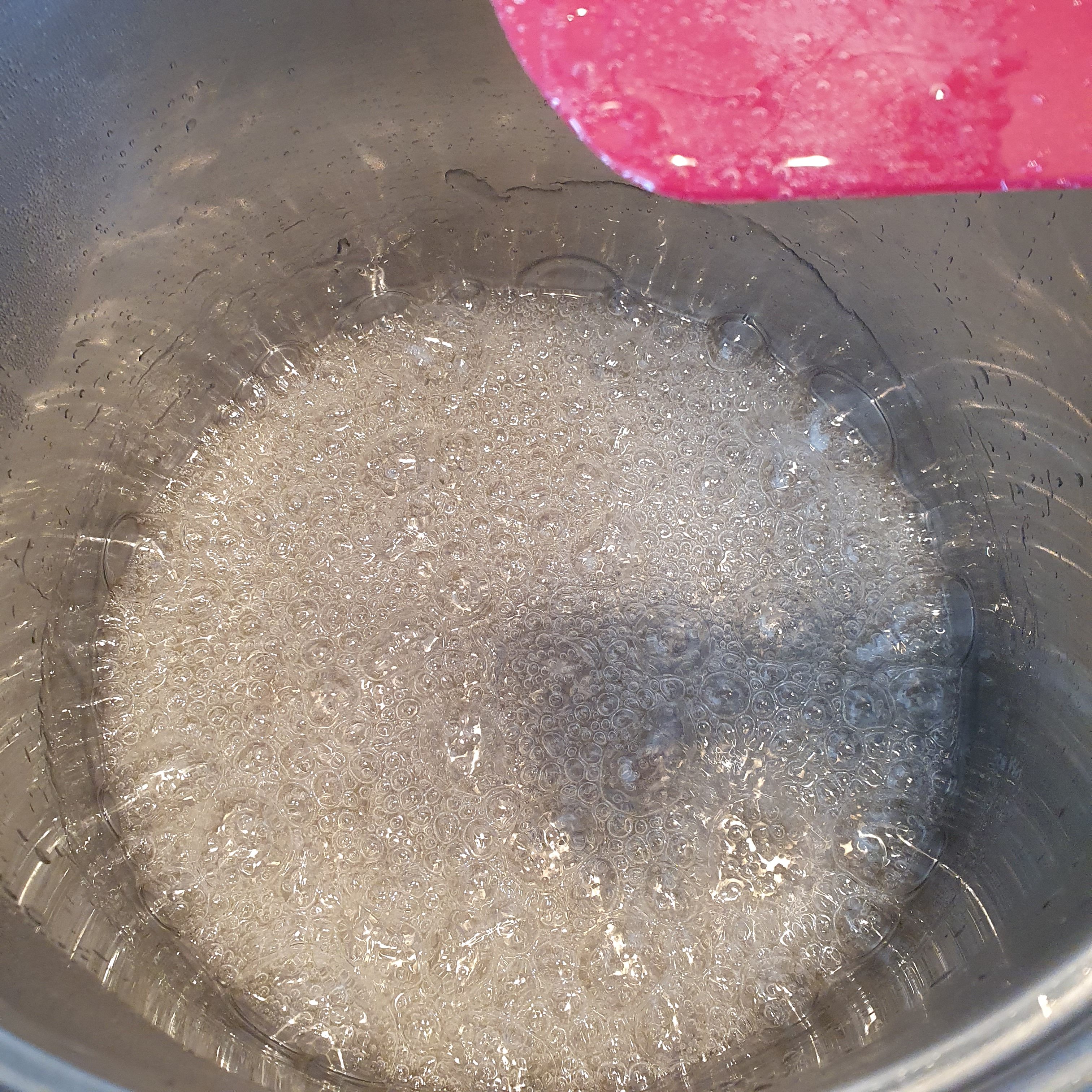 За целта разтопете захарта с малко вода на гъст сироп. Внимавайте да не загори. Горе-долу гледайте да се сгъсти като на следващата снимка: