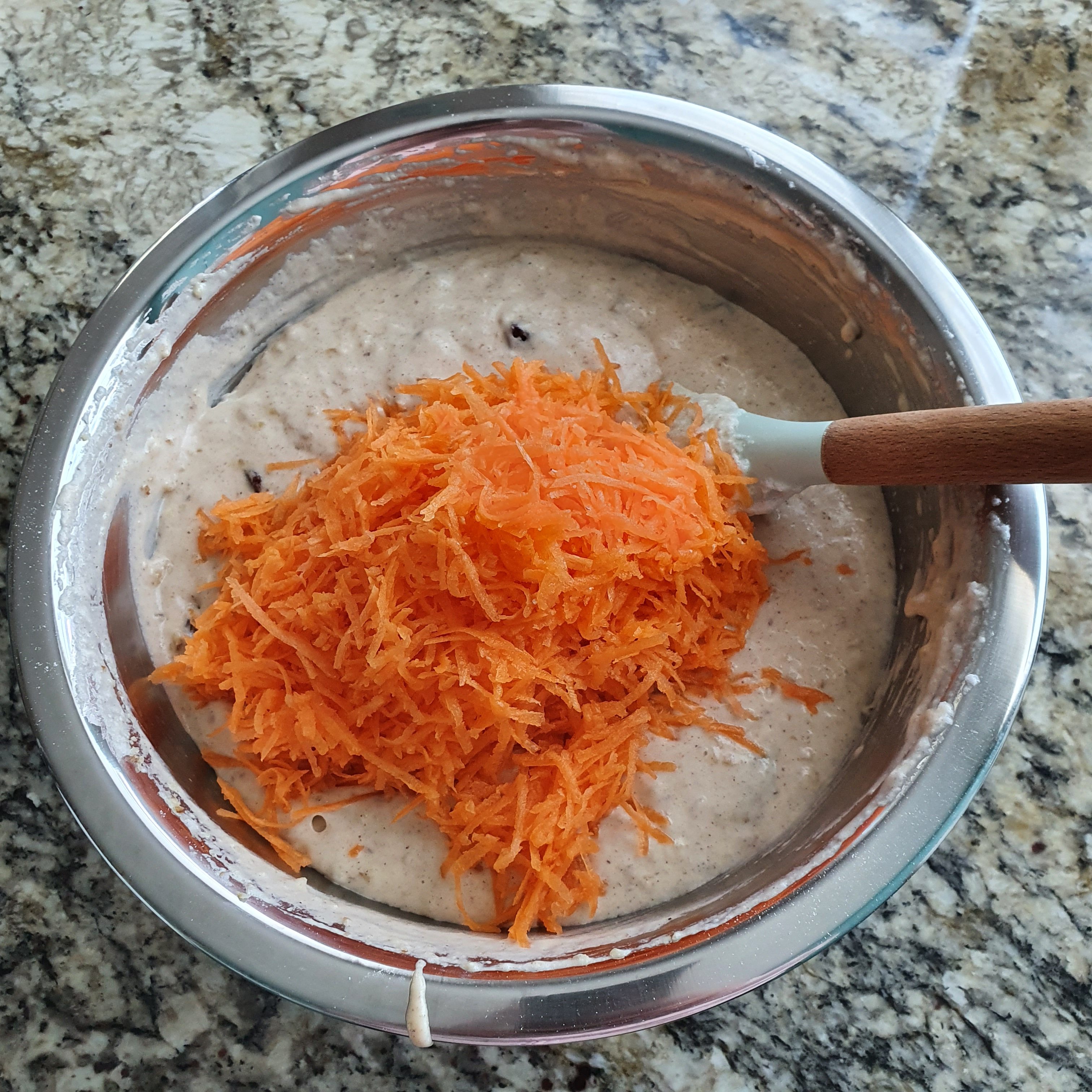 Най-накрая прибавете и настърганите моркови и за последно разбъркайте внимателно.
