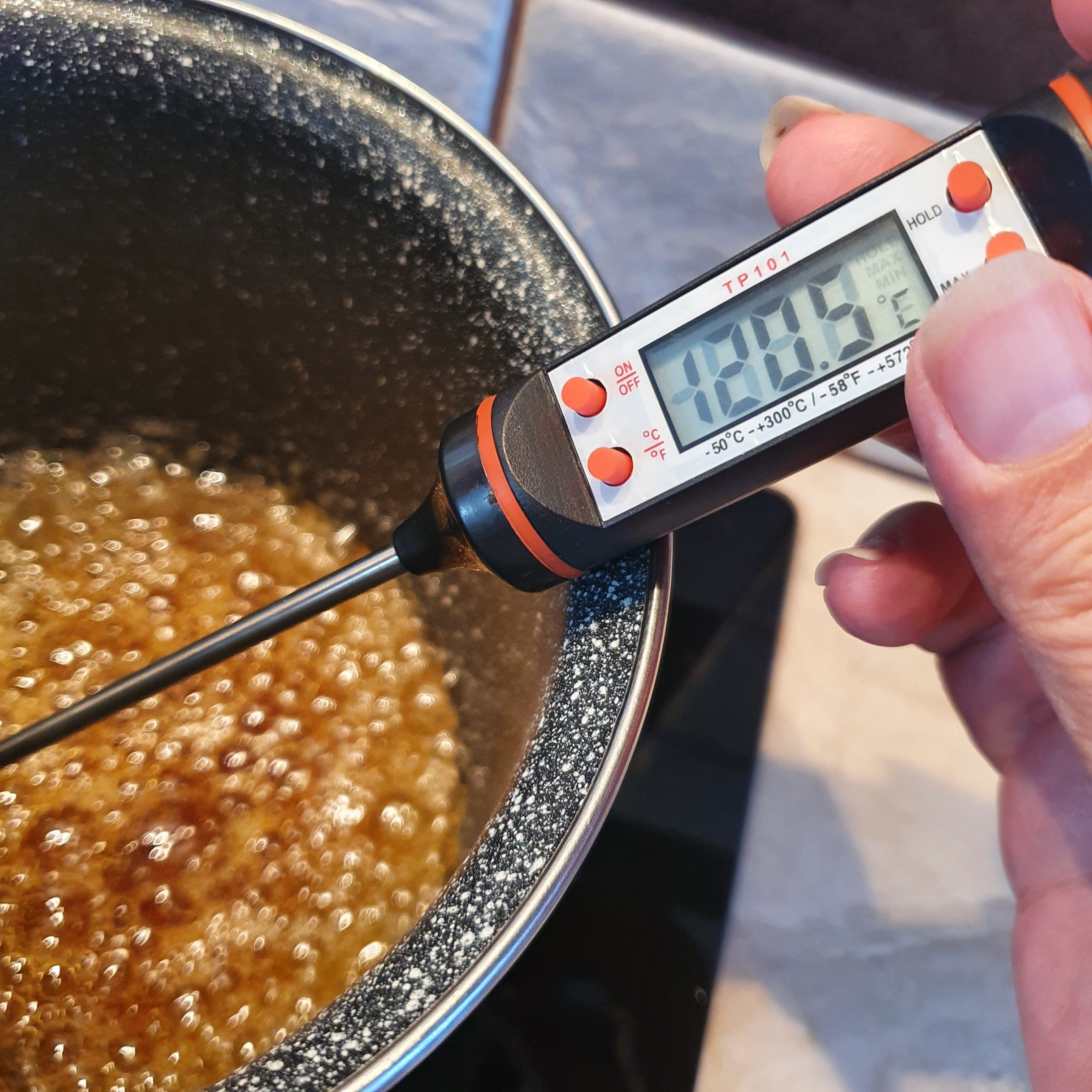 Охладете докато направите меренга. За целта трябва да правите две неща почти едновременно. Да разбиете белтъците с лимоновия сок до меки връхчета и да сварите захарен сироп до 121 градуса.