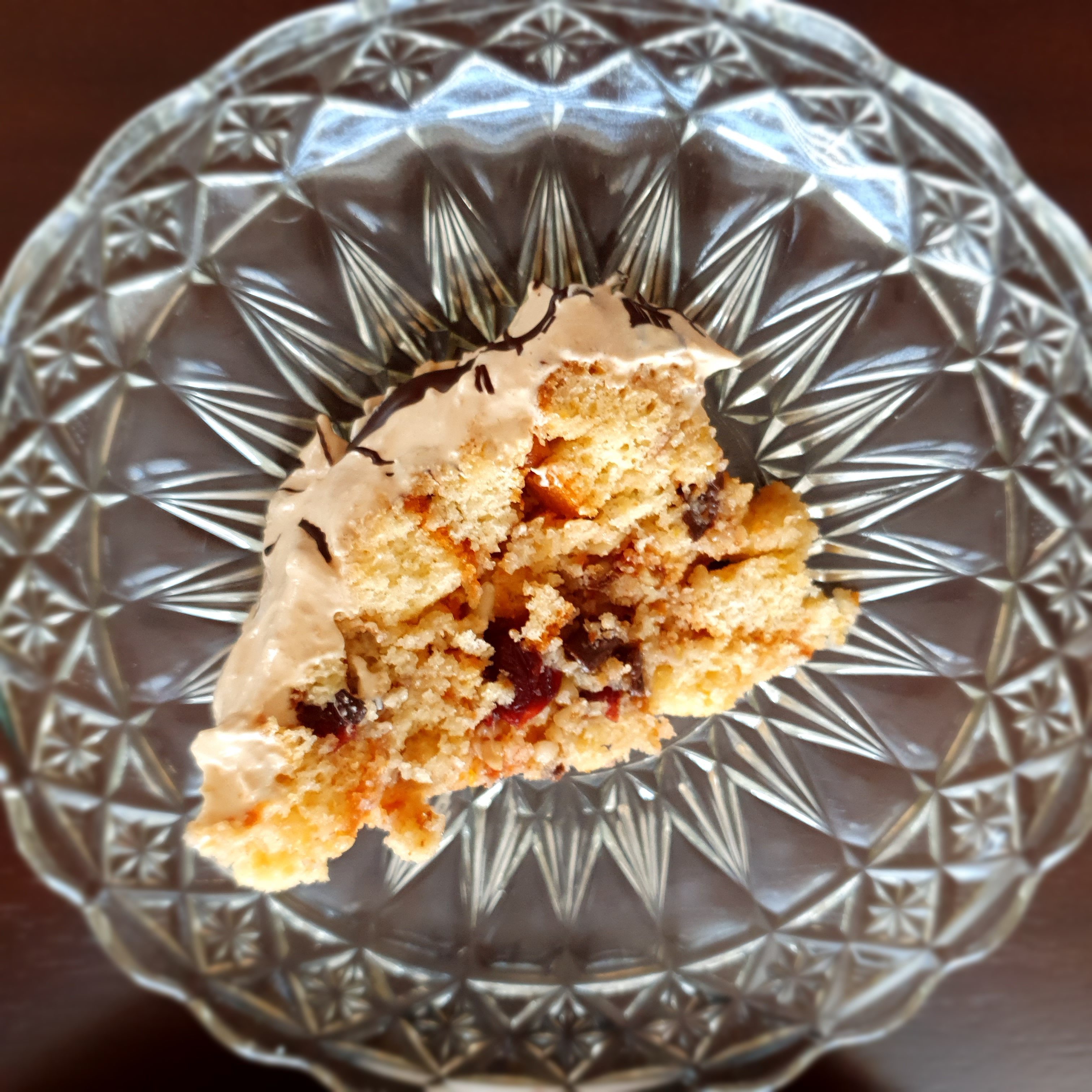Много изискана торта! Толкова вкусове и аромати! ‘Грешката’-дефект’ със захарния сироп се е оказала ефект и е прибавила точния завършек. (Обичам карамел! 😉 )