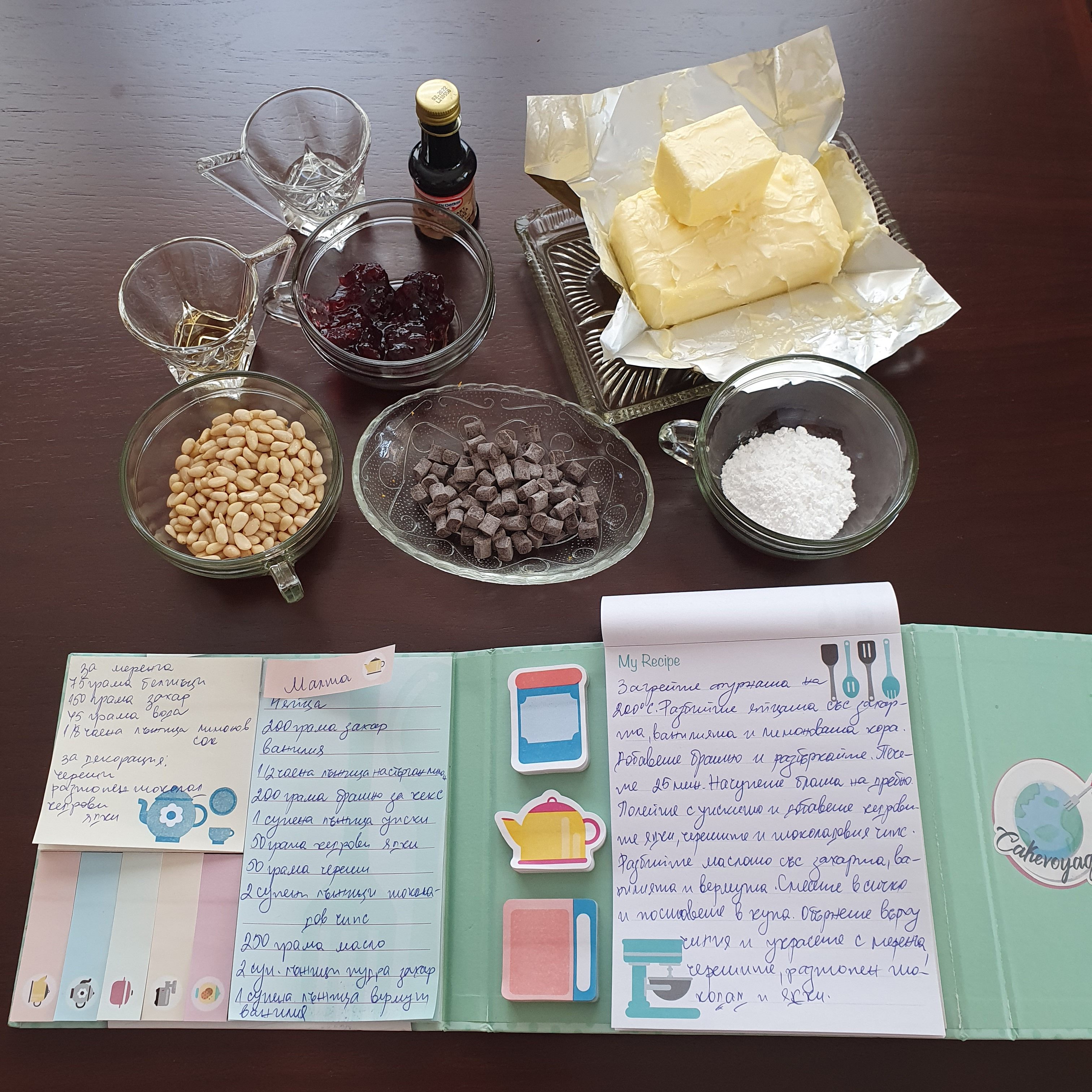 Тортата, която избрах да приготвя се казва “Prinjolata”. Това е традиционна торта за карнал, който предхожда седмицата на пеплната сряда. Каквато и да е тази сряда. 😀 Името на тортатаидва от думата prinjol – кедрови ядки, които са ярка съставка в рецептата ѝ. Ето и необходимите продукти: