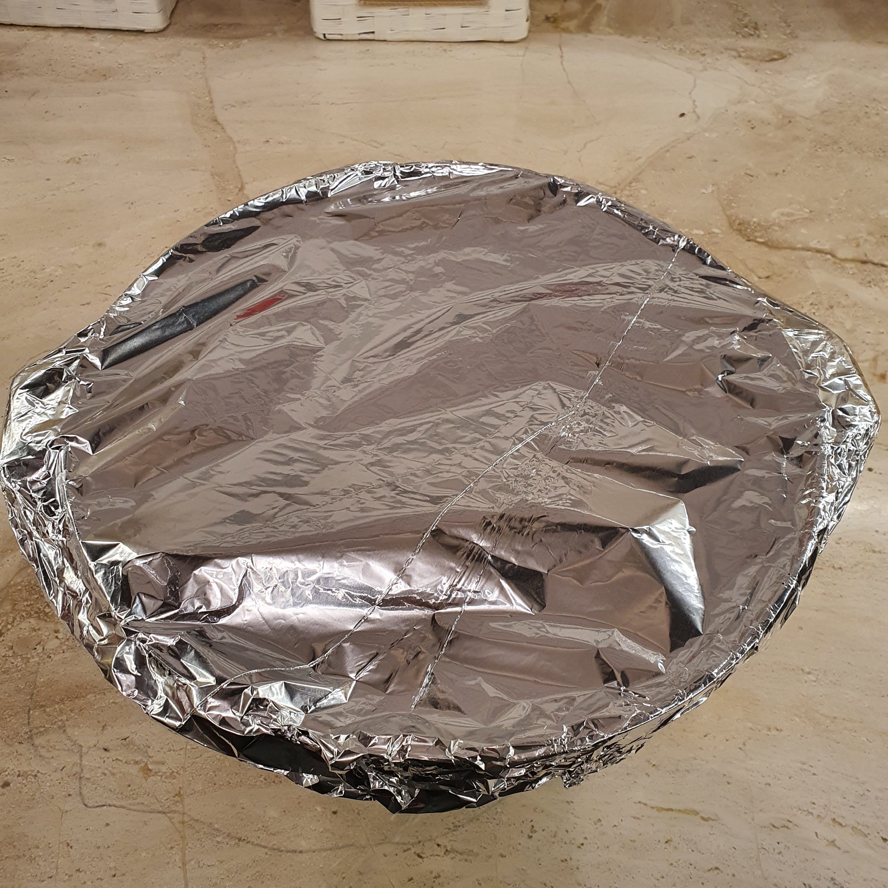 Сложете алуминиево фолио на тавата, а нея я поставете в по-голям съд, за да печете на водна баня. Във външния съд сипете гореща вода и печете час на 180 градуса. След това махнете фолиото и печете още около половин час или до готовност.
