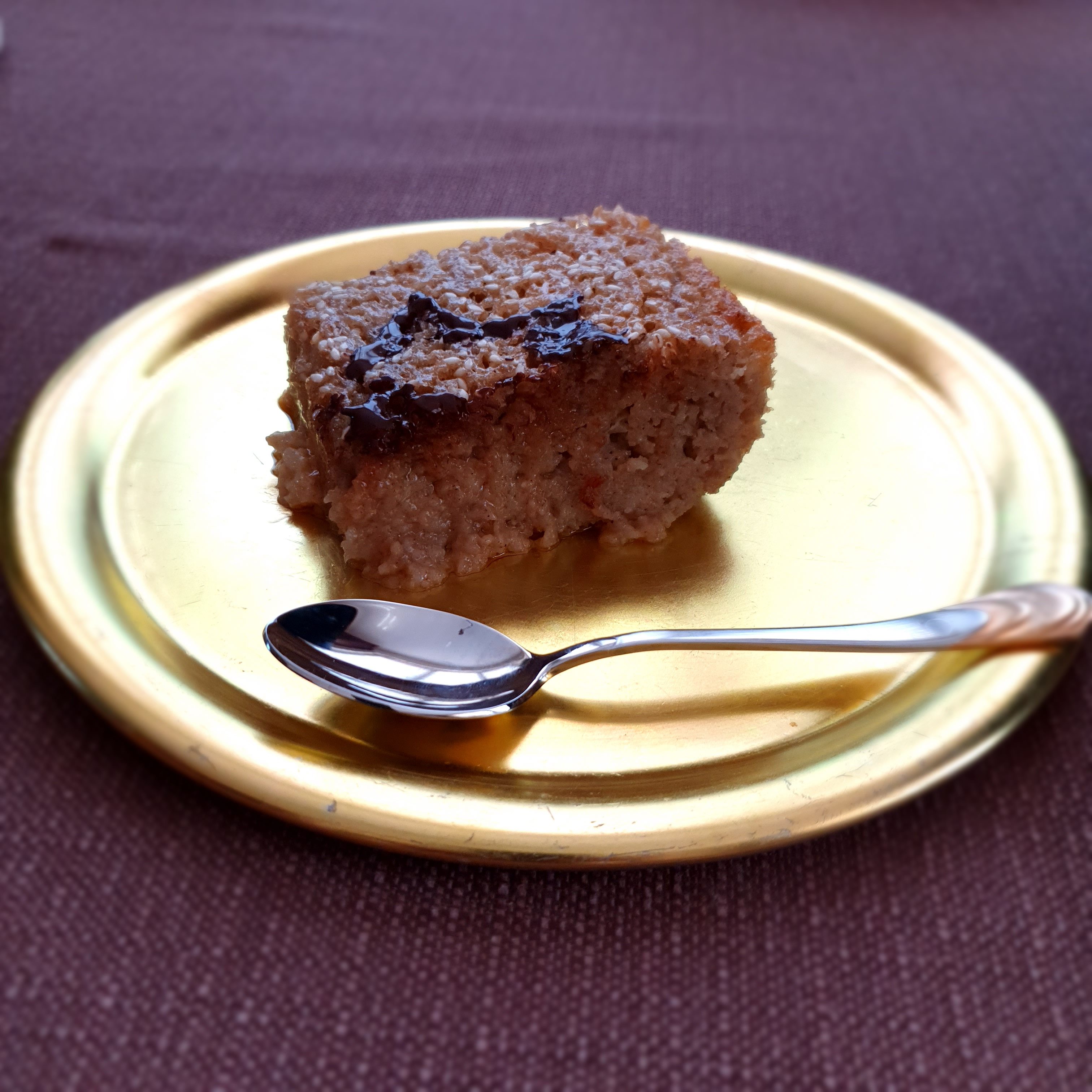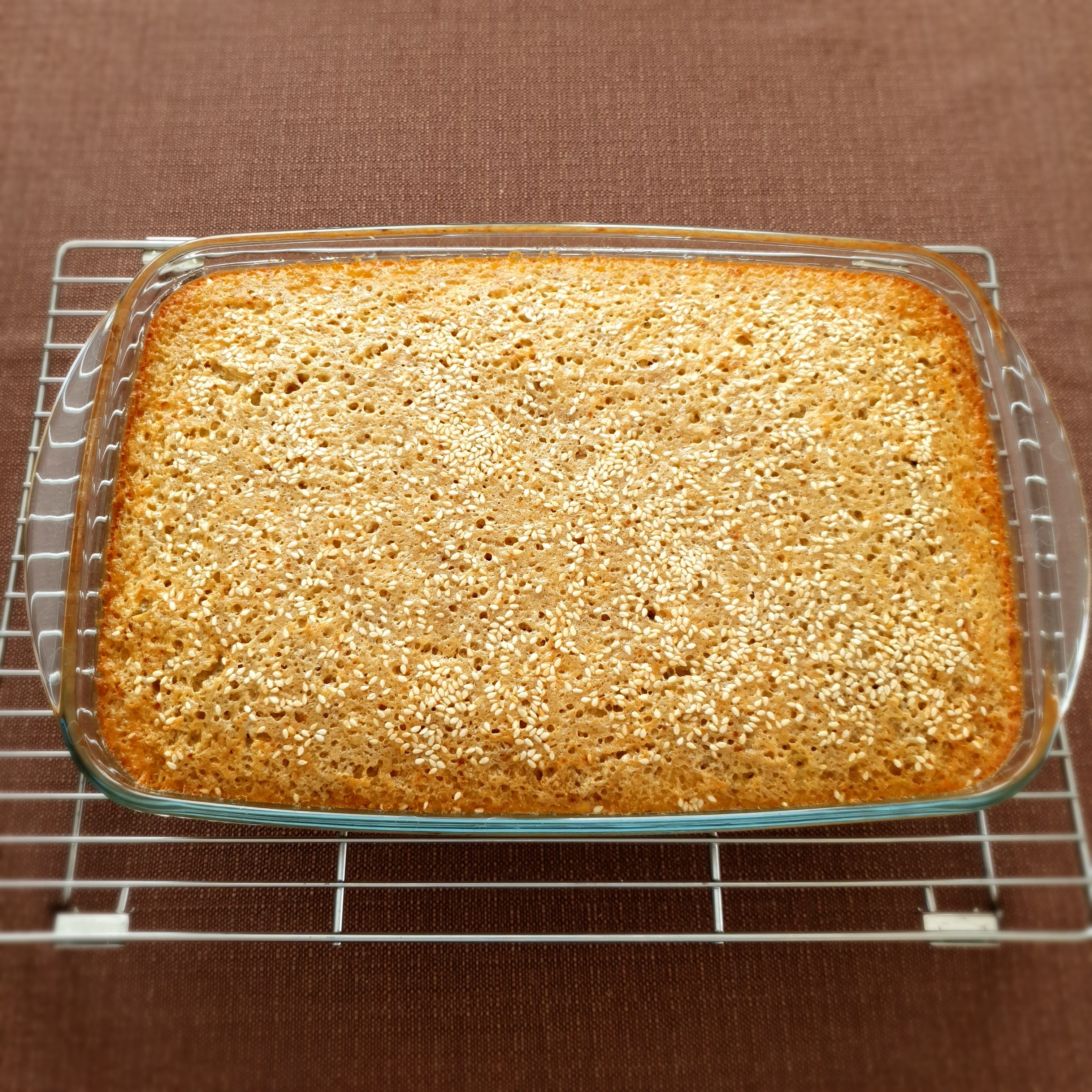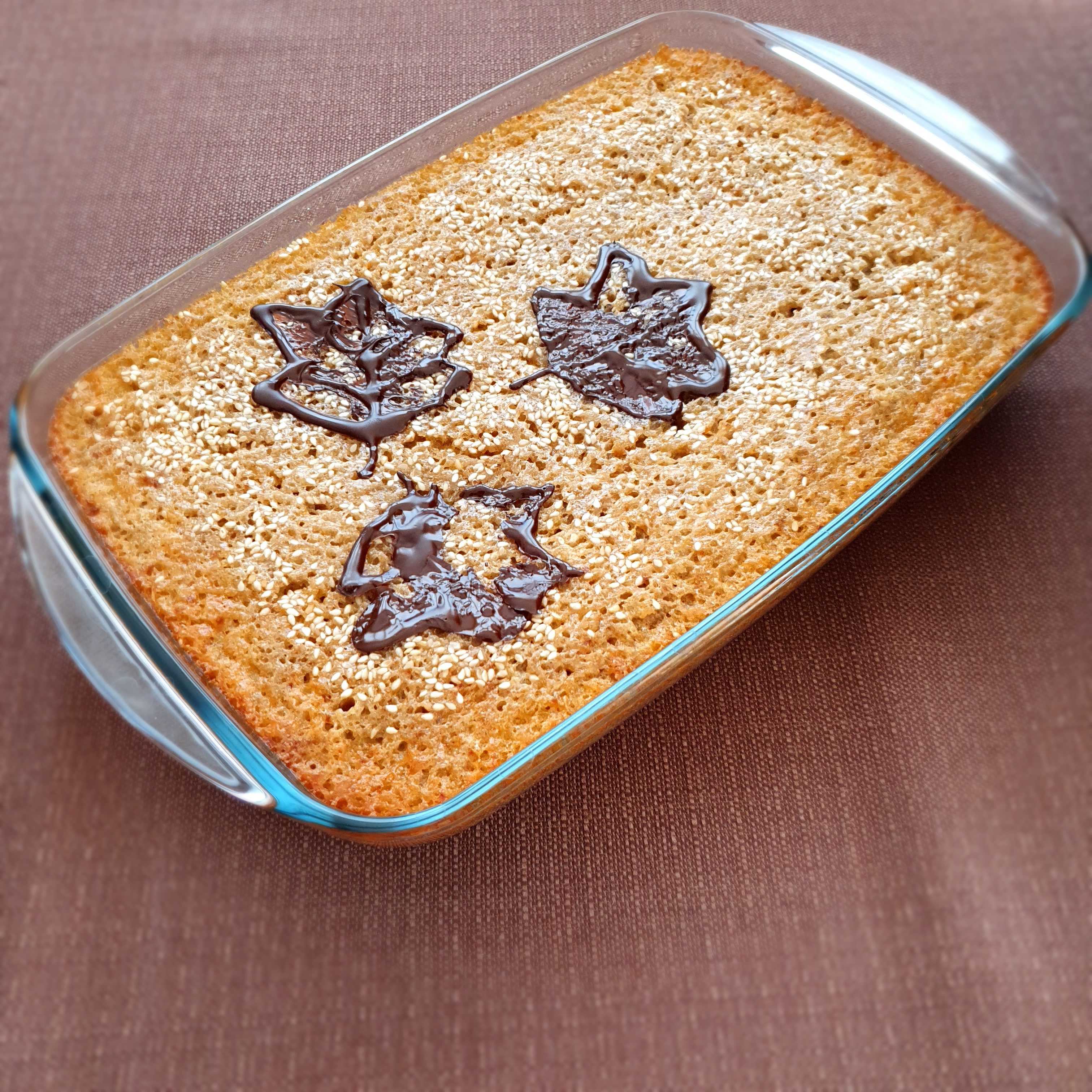 Наистина сочен, ароматен и лек сладкиш! Сложих малко повече сусам, защото много го обичаме. Даже обилно поръсих…