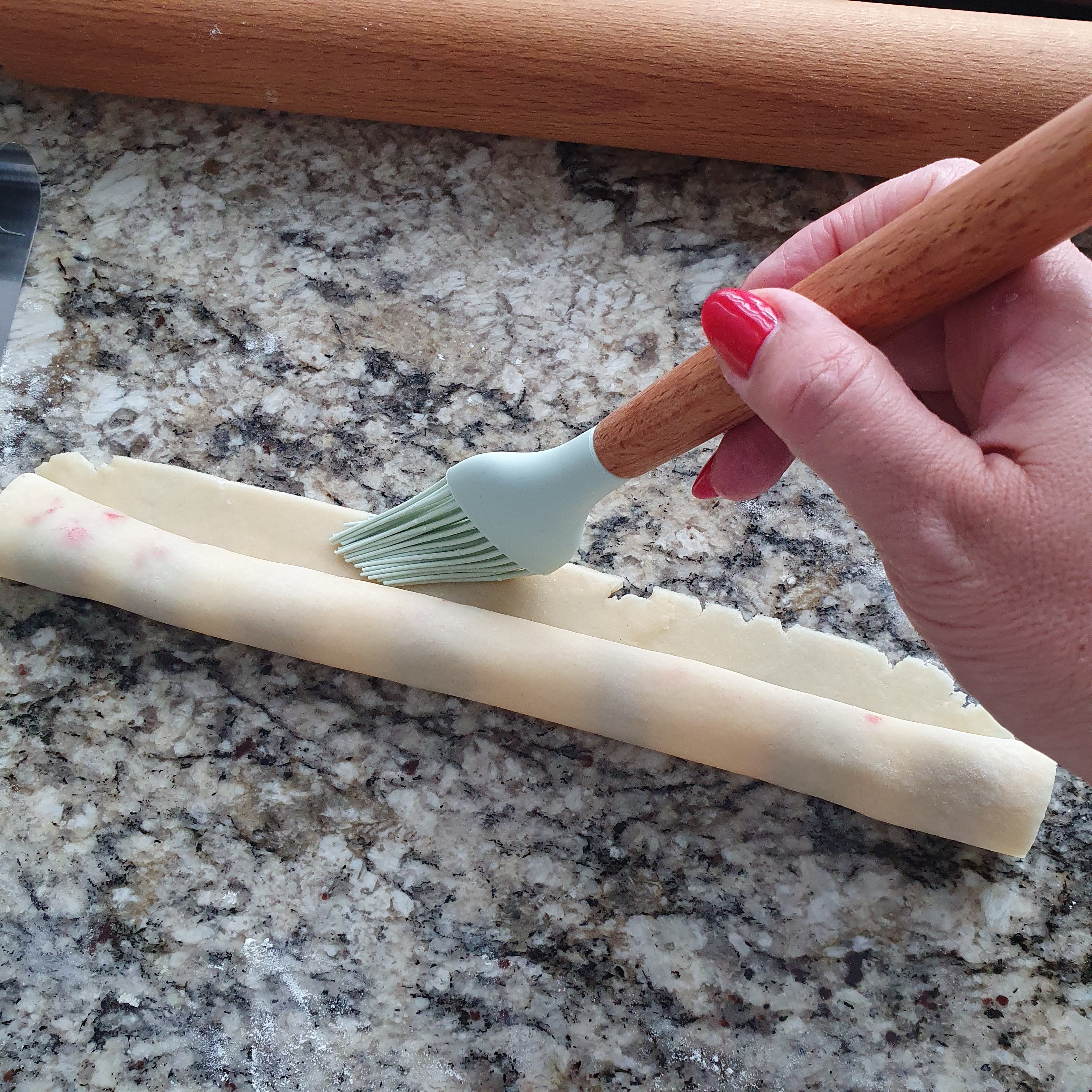 Завийте на руло, а в края намажете с четка малко вода да се слепне.