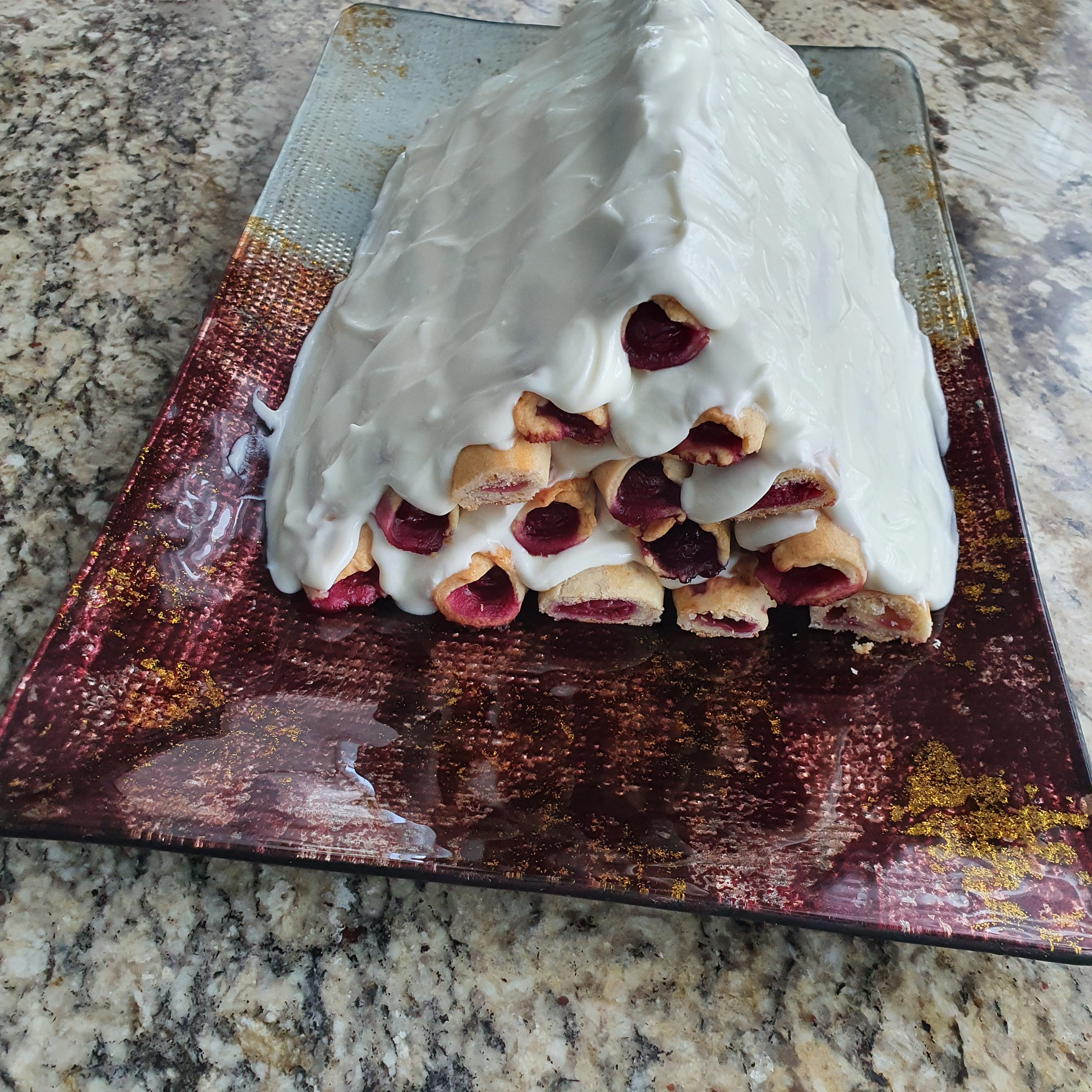 Но и като торта е много ефектна и си мисля, че за Коледа ще е също подходяща – парчетата приличат на снежна елха с играчки. 🙂