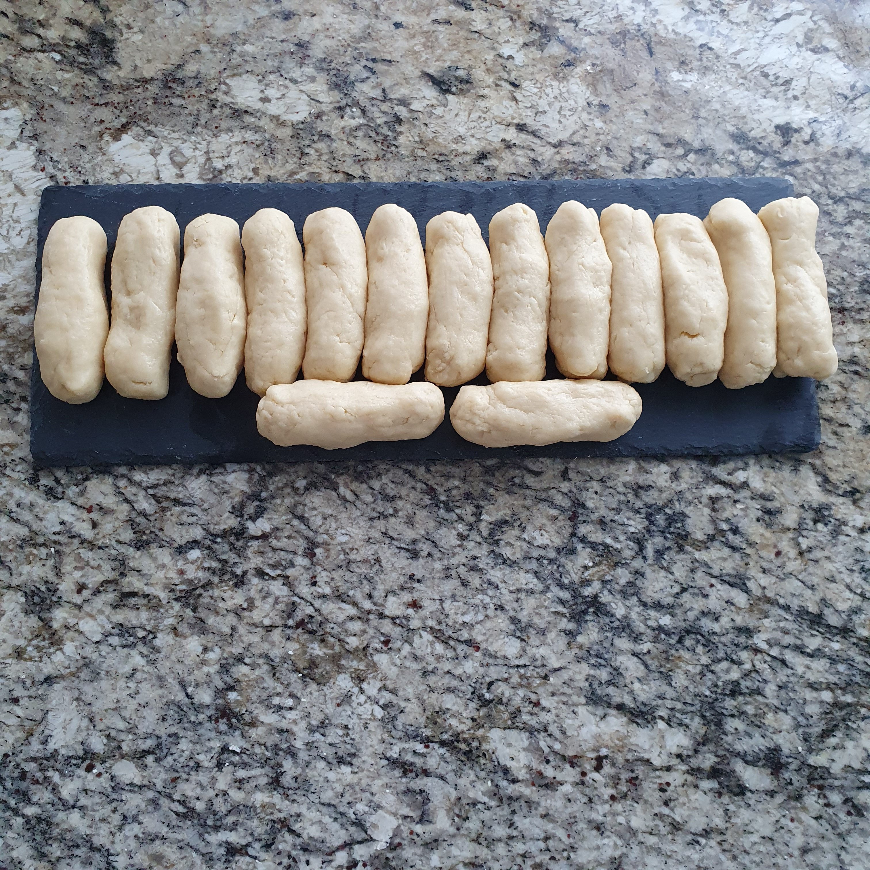 С помощта на кухненска везна разделете тестото на 15 равни части и ги оформете по следния начин преди да ги оставите да се охладят в хладилника за час и половина: