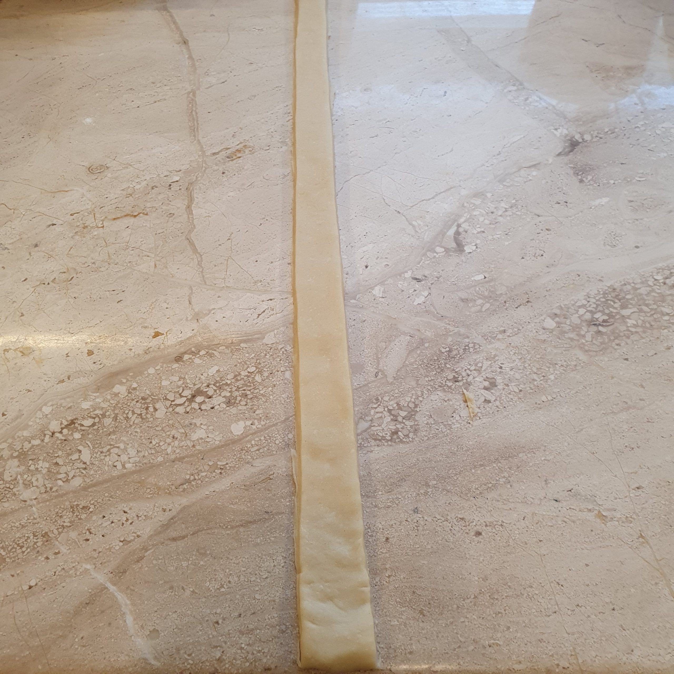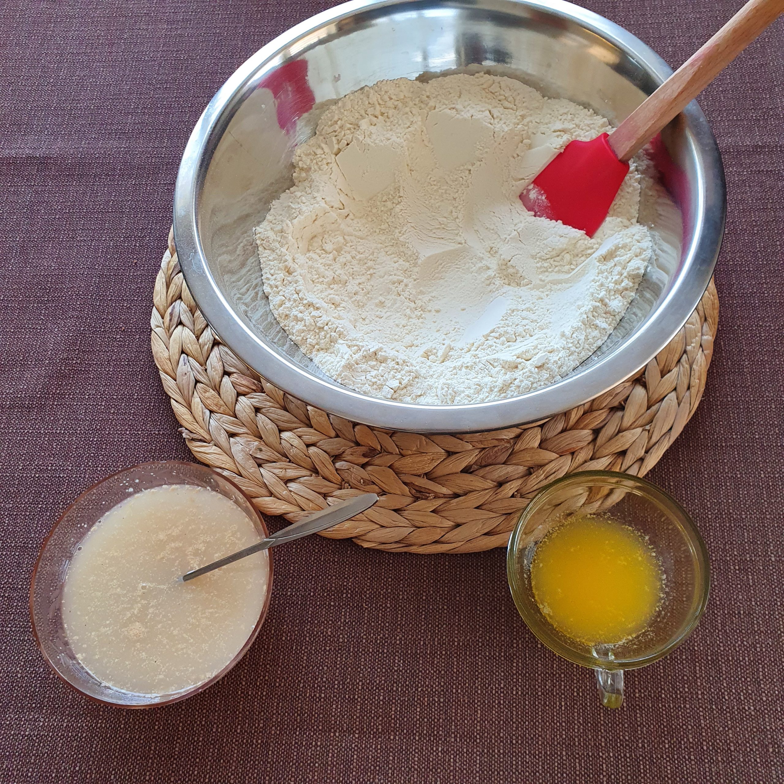 Замесете тесто като за хляб, а ако се наложи добавете още хладка вода.