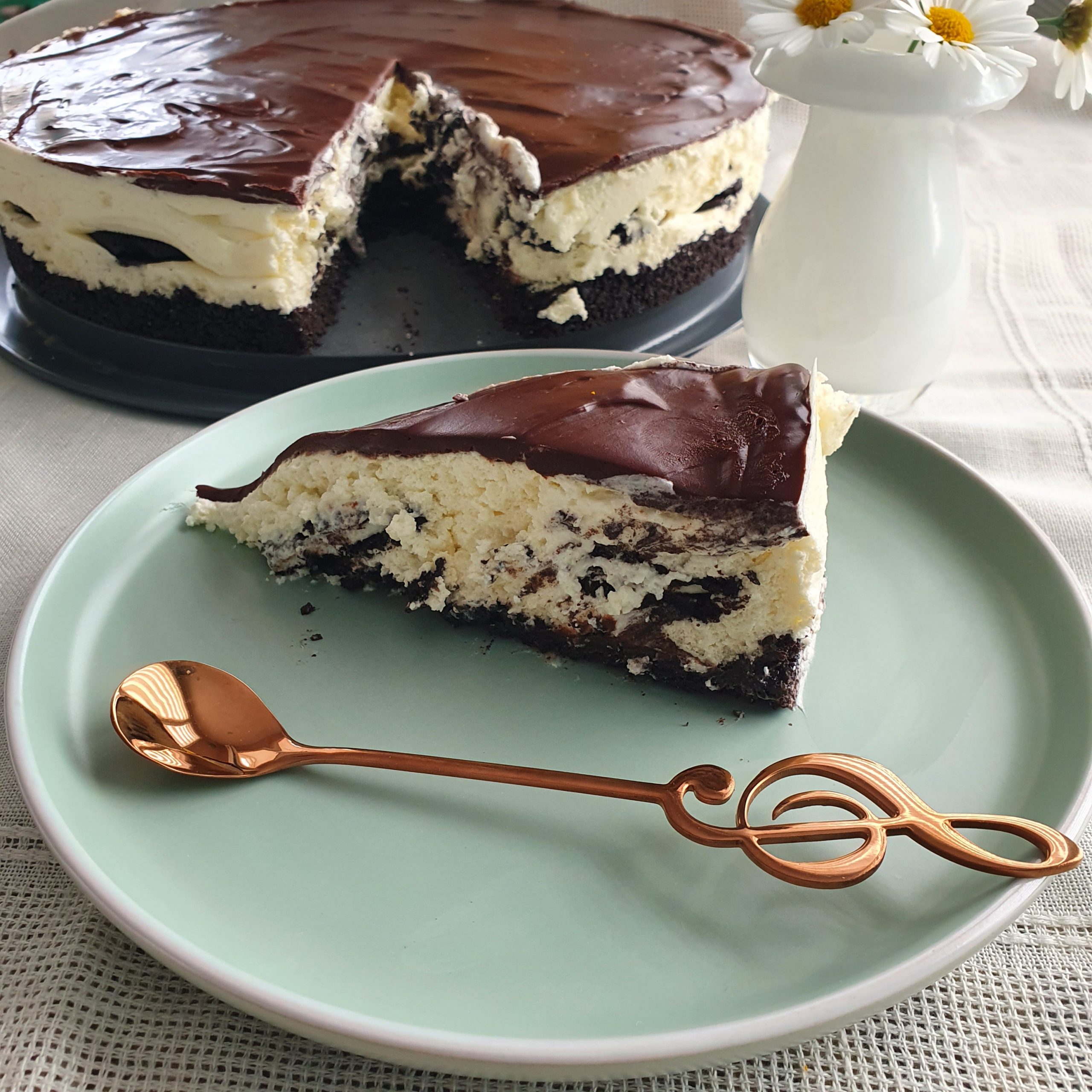 Това е. Нищо сложно. Чийзкейкът е много вкусен, но на мен ми е леко сладък. Бих намалила захарта в крема. По принцип харесвам повече печените чийзкейкове. Но познавам много хора, които предпочитат такива, които не се пекат, като този. Ако и вие сте от тези хора то опитайте “Орео чийзкейк”. Няма да съжалявате.