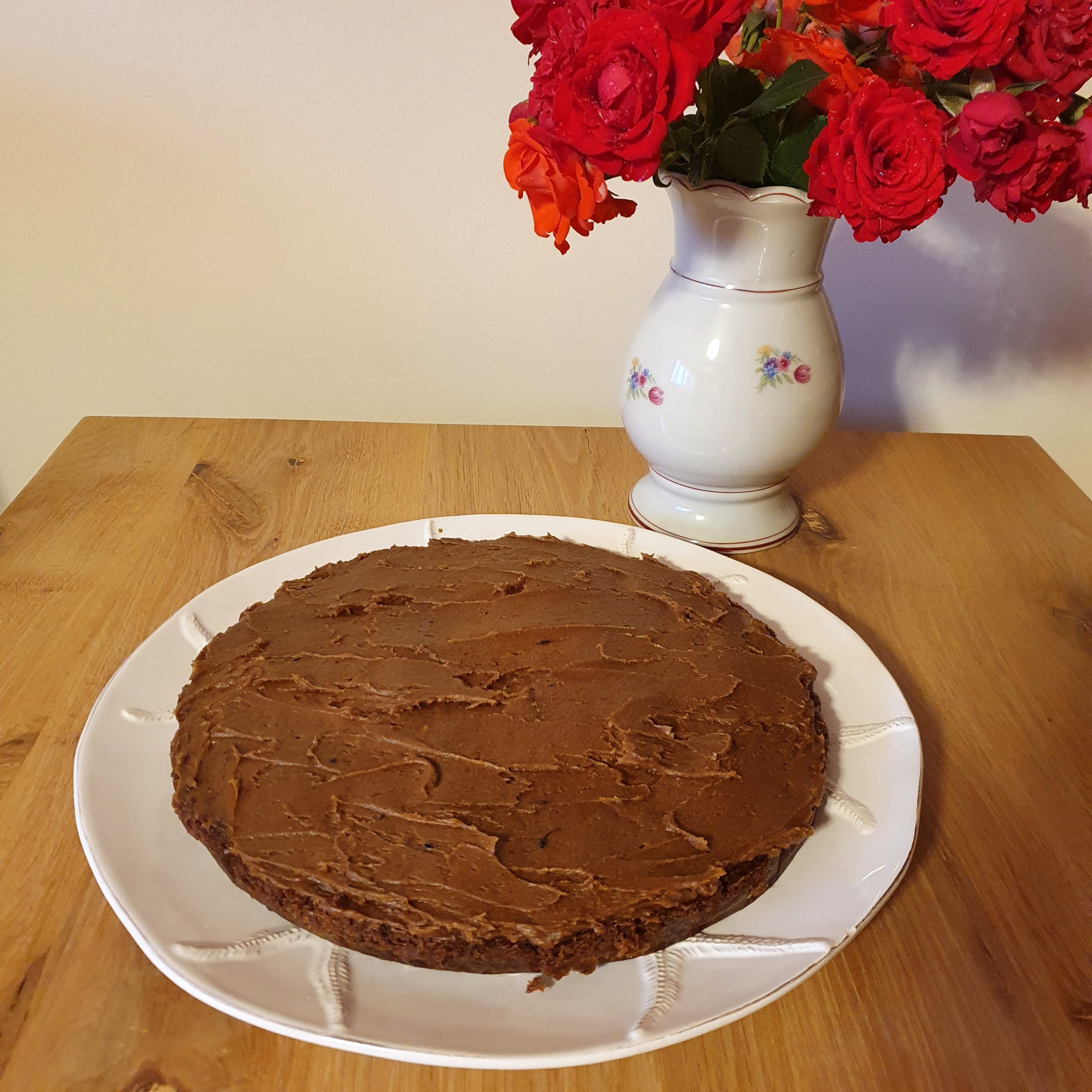 Намажете тортата с крема отгоре и украсете по желание. Аз просто небрежно намазах крема и това ми се стори достатъчно.