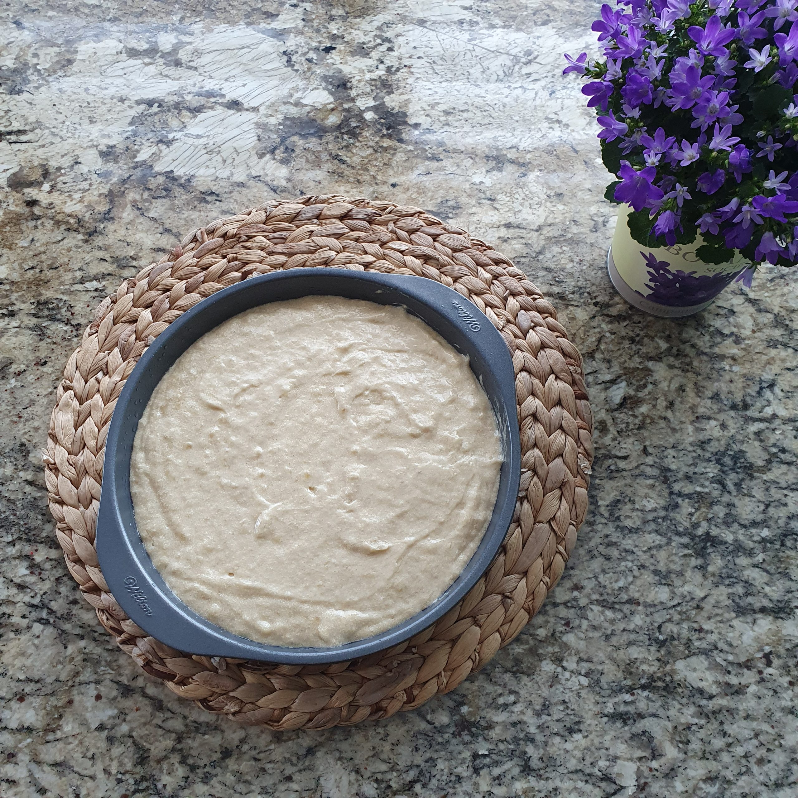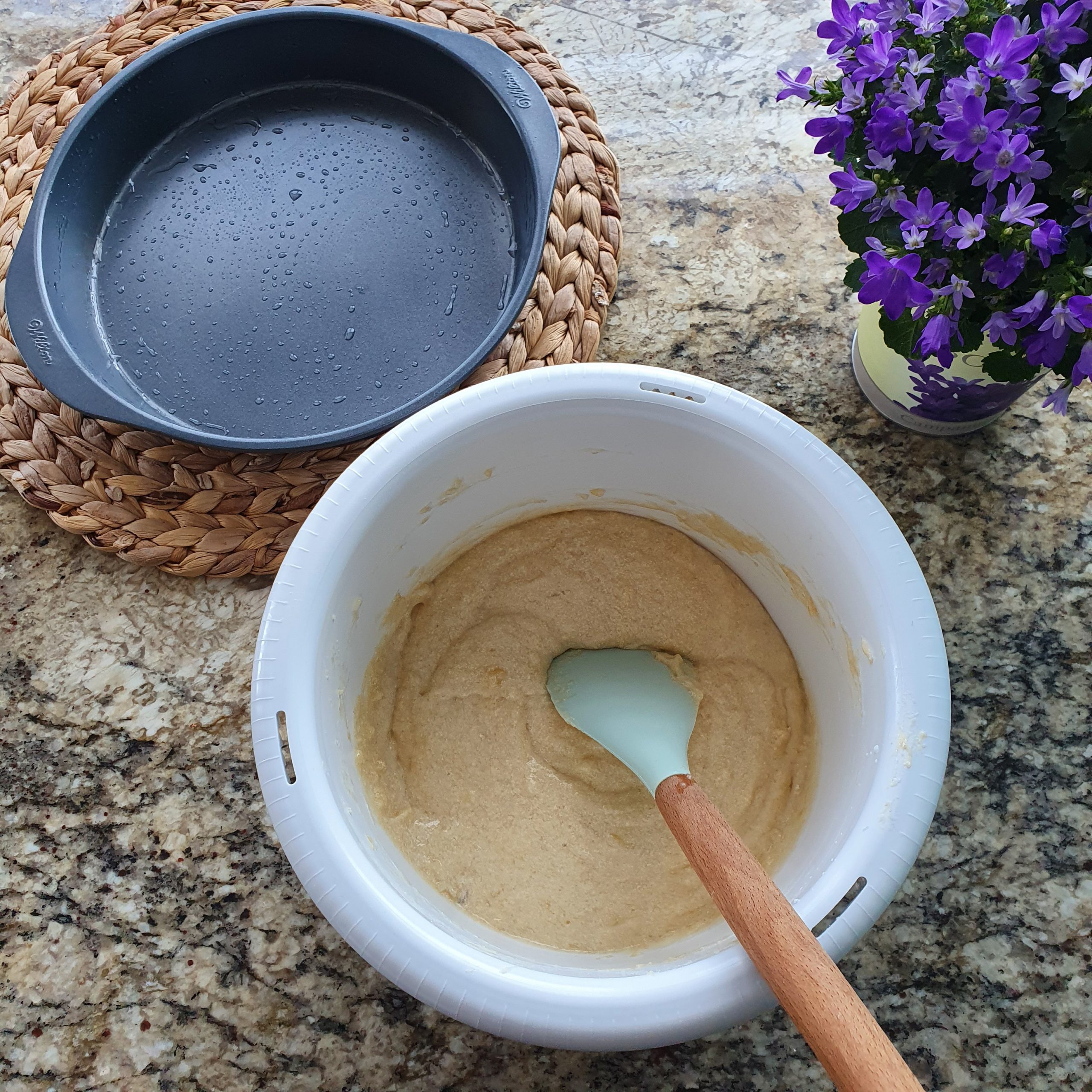 Изсипете тестото във формата за торта.