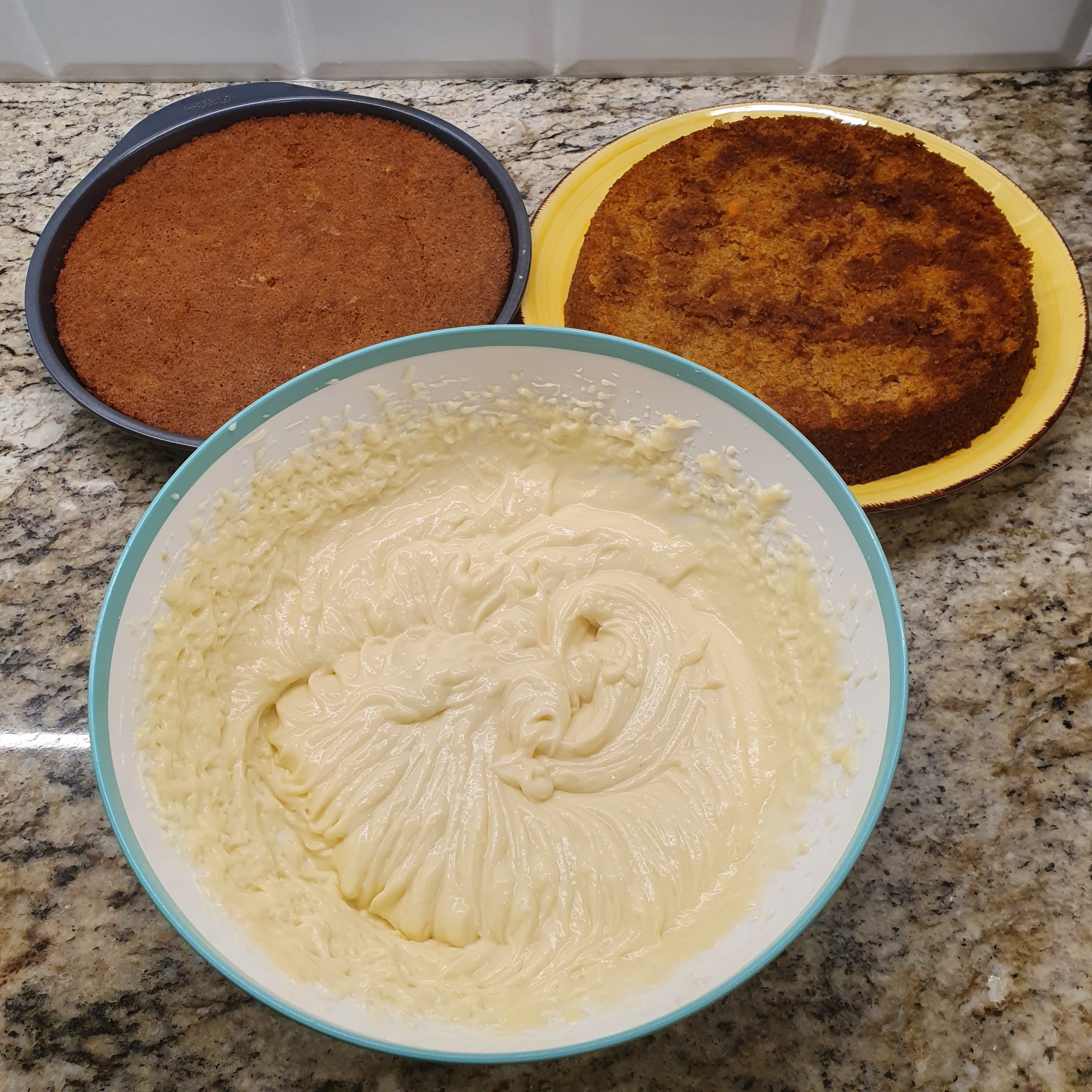 От това количество бихте могли да направите 24 или 28 мъфина. Можете да направите и тортата от два слоя като разделите тестото на две(както направих аз). Само съобразете времето за печене, защото сместа ще е по-малко и ще се опече за по-кратко време. Кремът ще стигне при всички случаи и за двуслойна торта.