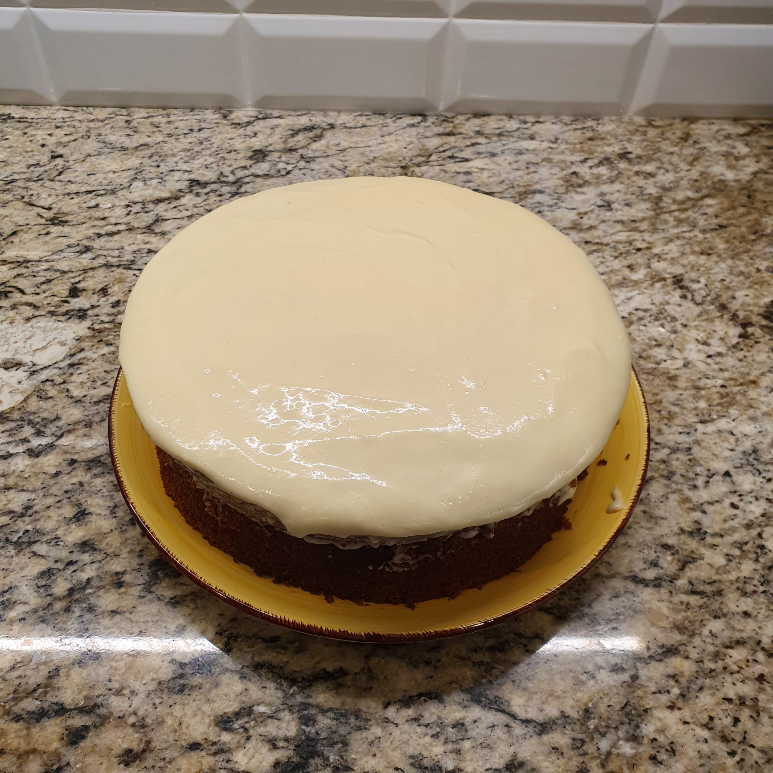 Сложете глазурата върху напълно охладената основа и след това сложете в хладилника за 20 минути да се охлади цялата торта.