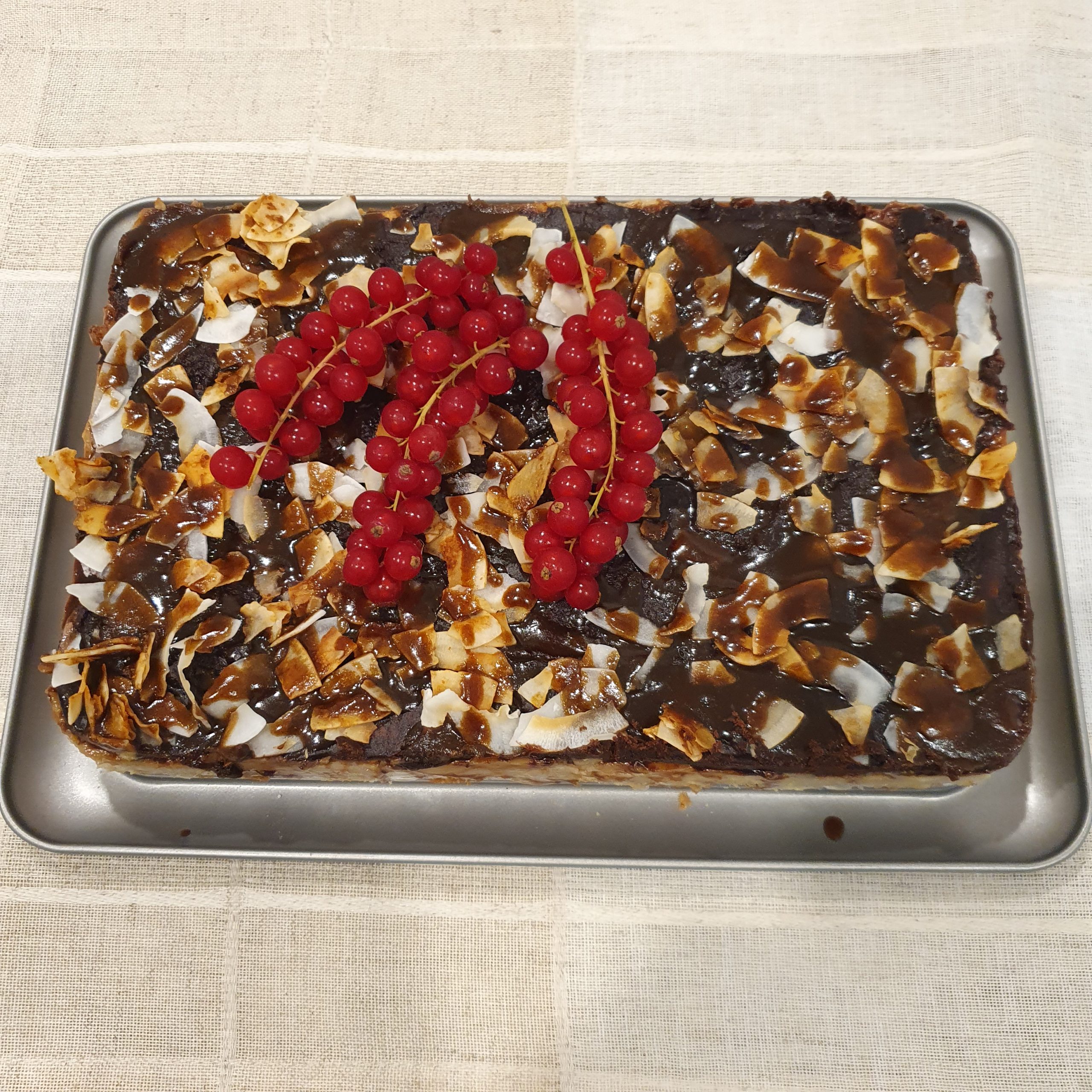 Тортата е много вкусна. Прилича на обичаната от всички бисквитена торта, но карамеления сос и кокосът променят вкуса и го обогатяват. Харесах тази рецепта и мисля, че ще я приготвям и в бъдеще. Ако ползвате традиционните бисквити за бисквитена торта трябва да я държите повече в хладилника преди да я сервирате, за да поемат бисквитите добре крема. Заливката е много интересна на вкус – добавя шоколадови нотки и прави вкуса по-богат.