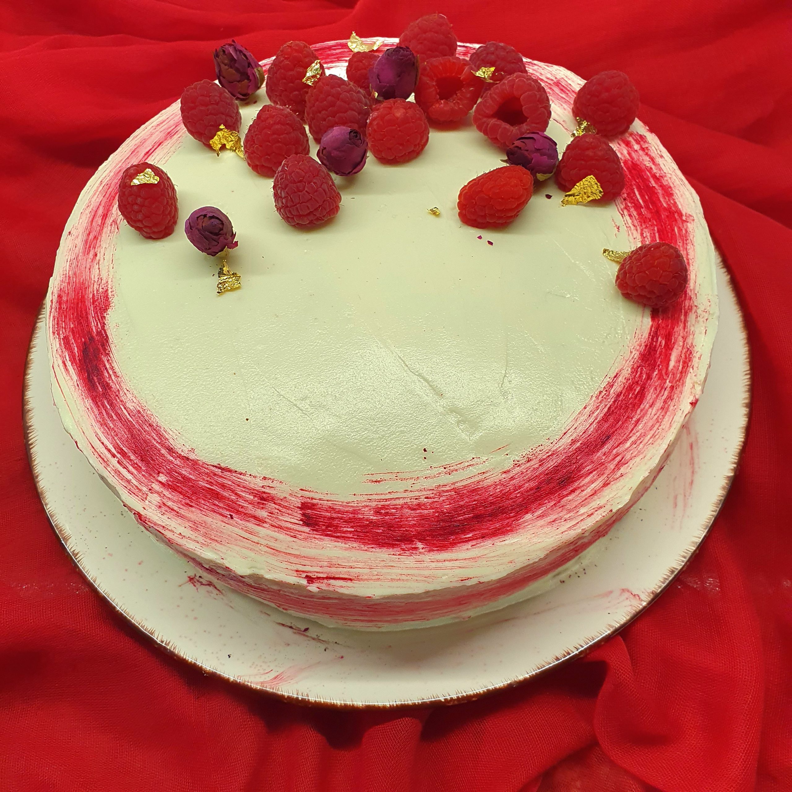 Сглобете тортата и декорирайте по желание с червени плодове (ягоди, малини, френско грозде) или с трохи от изрезките от блатовете.