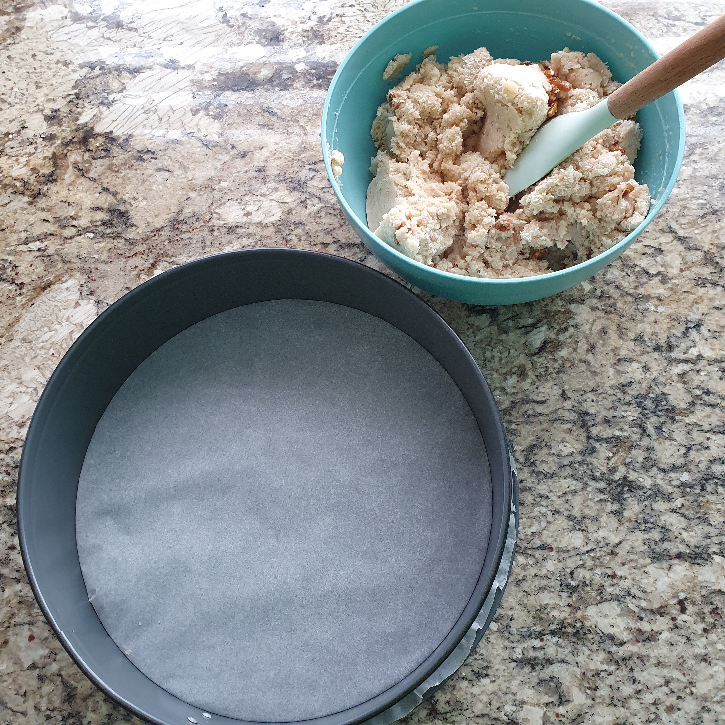 След това добавете галетата и бакплувера, орехите, кокоса и нарязаните смокини.