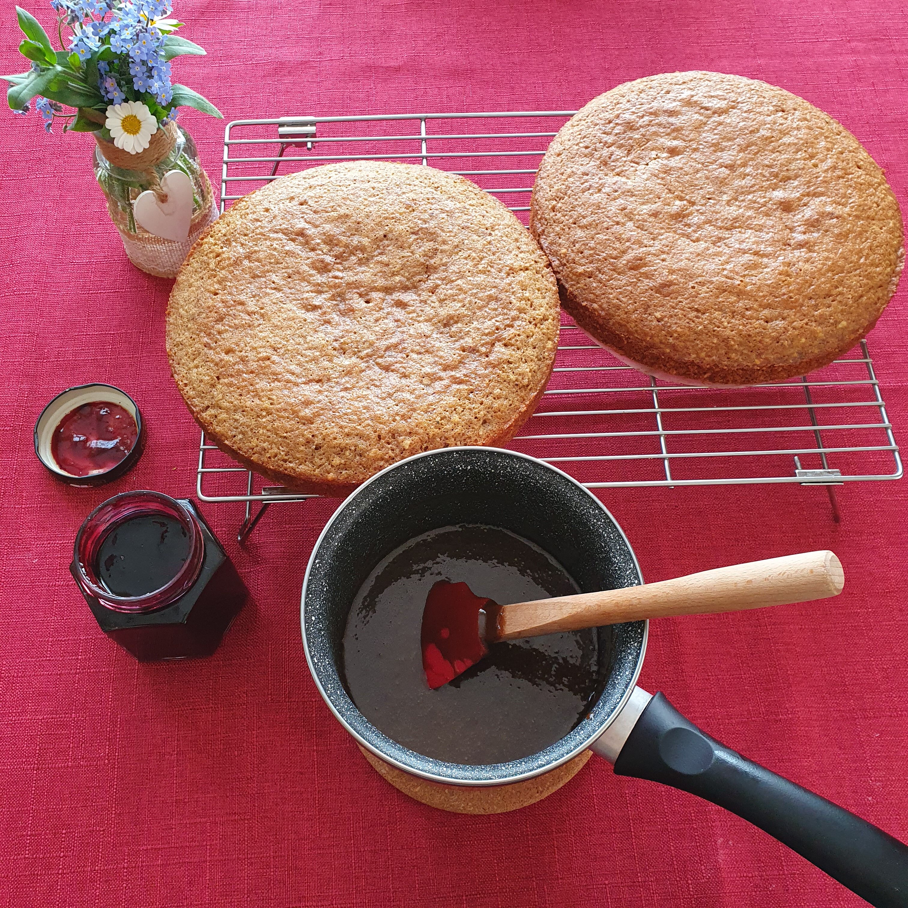 За вас реших да направя една традиционна торта за остовите – “Jam cake”. Ето и необходимите продукти за нея: