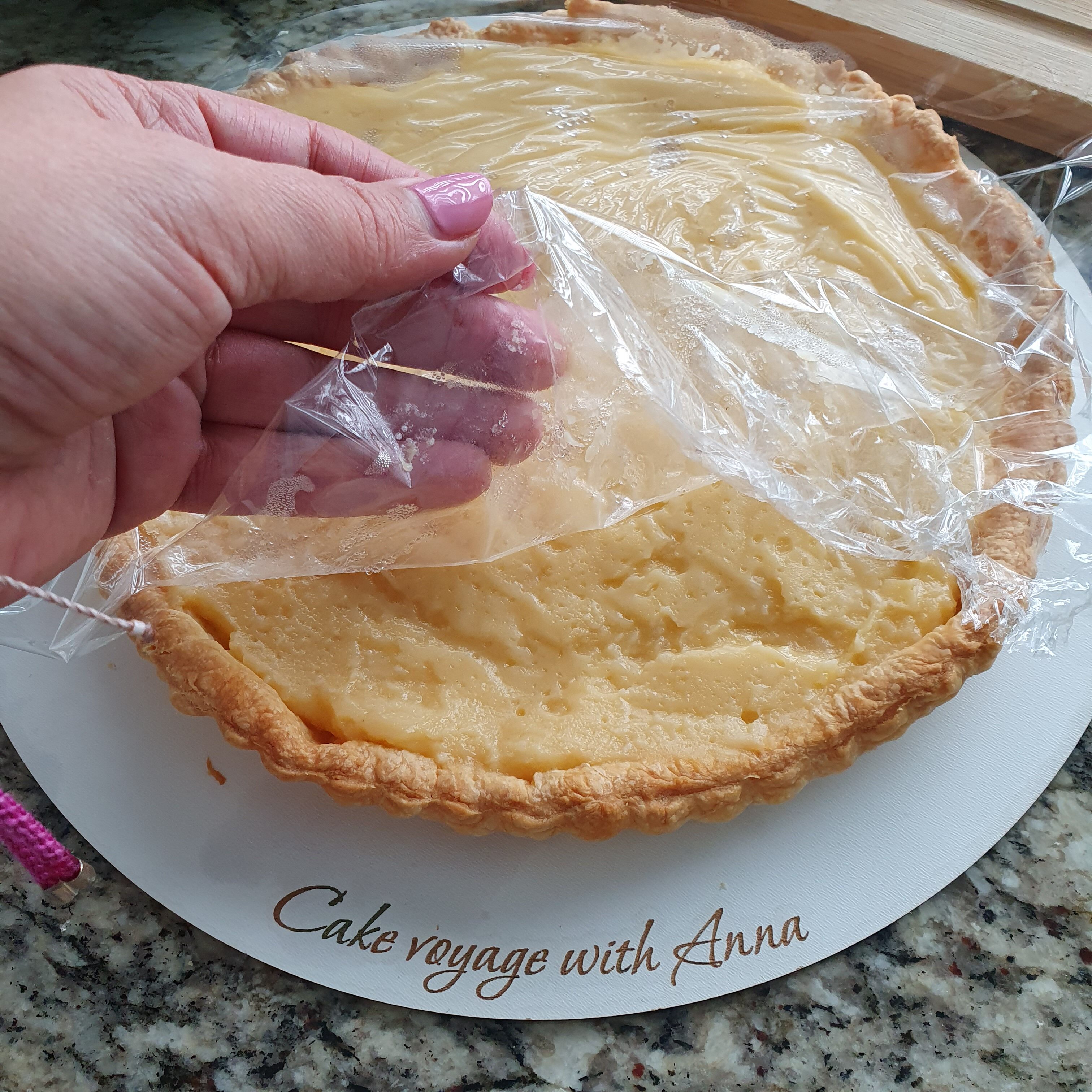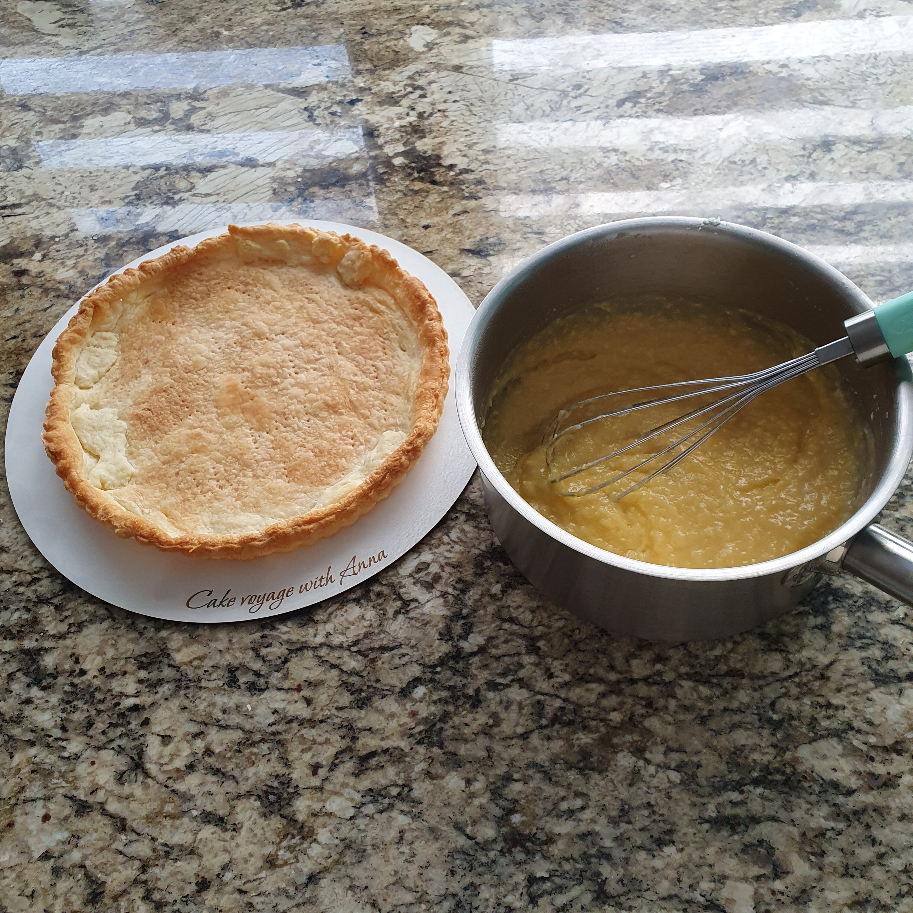 Опечете кората на пая както е описано на https://cakevoyage.com/2020/11/30/%d0%ba%d0%b5%d0%bd%d0%b8%d1%8f/.