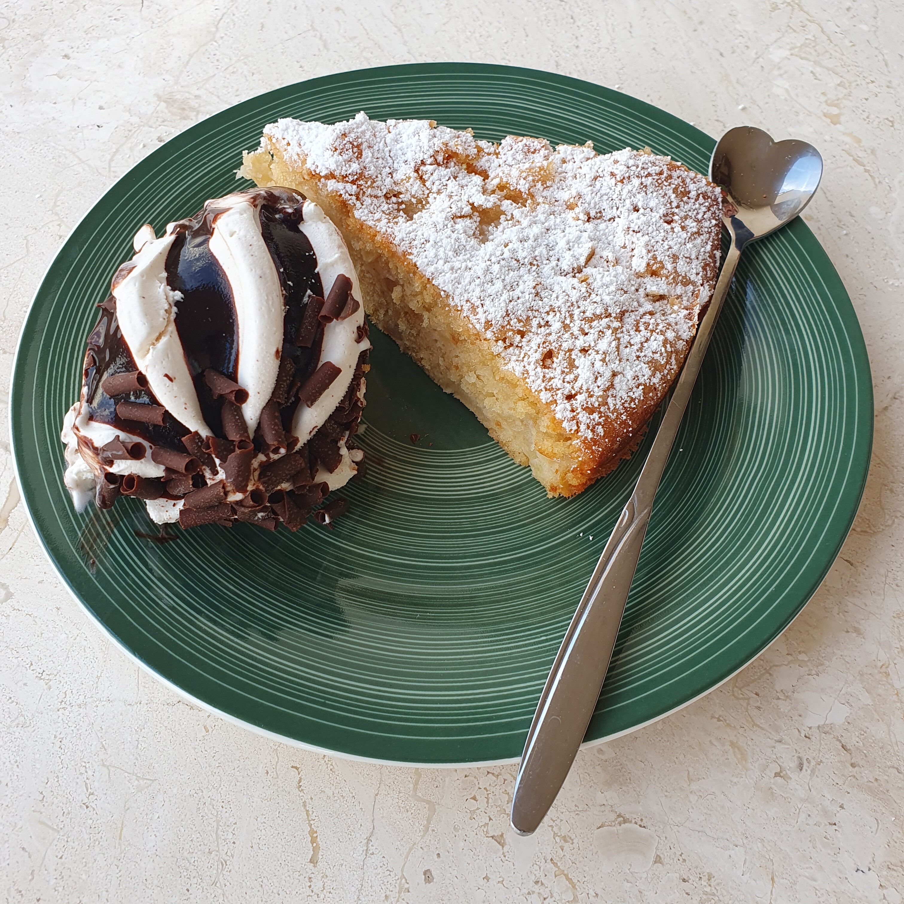 Можете да сервирате десерта топъл или със стайна температура. Много му отива и топка ванилов сладолед. Съвсем по френски. 😉 Аз гарнирах със страчатела, защото ми е любим вкус. Тортата е семпла, но много вкусна. Ромът се усеща ненатрапчиво, но придава нещо екзотично към иначе простия ябълков сладкиш. Тортата е лесна за правене и изобщо не отнема време. Съставките са съвсем прости и ги има във всяка средностатистическа кухня. Опитайте и вие.