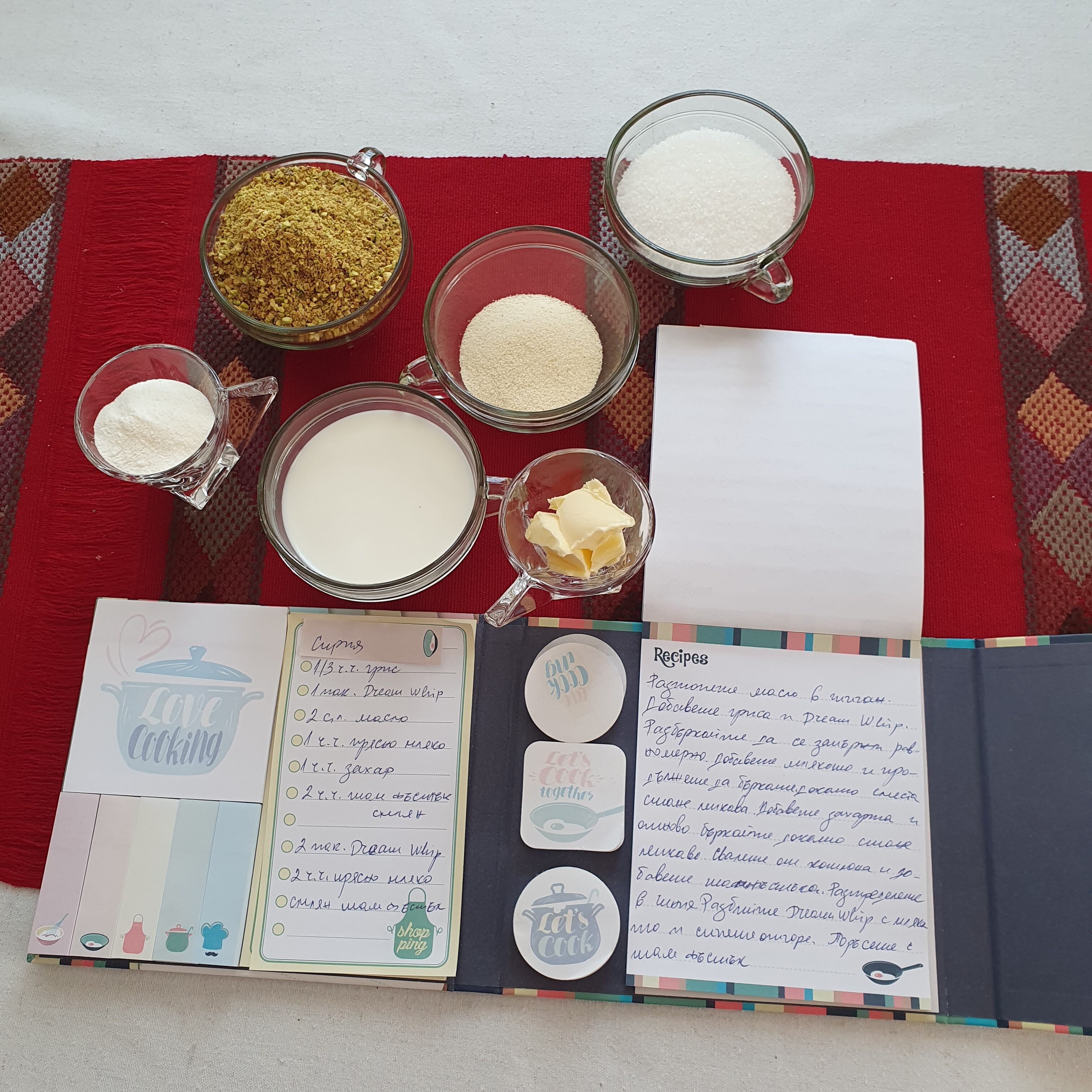 Тъй като “Dream Whip” е нещо местно и специфично за Сирия (може би за арабските държави като цяло) и у нас го няма се наложи да адаптирам леко рецептата. За основата замених със сметана на прах, за крема направих с течна сметана.