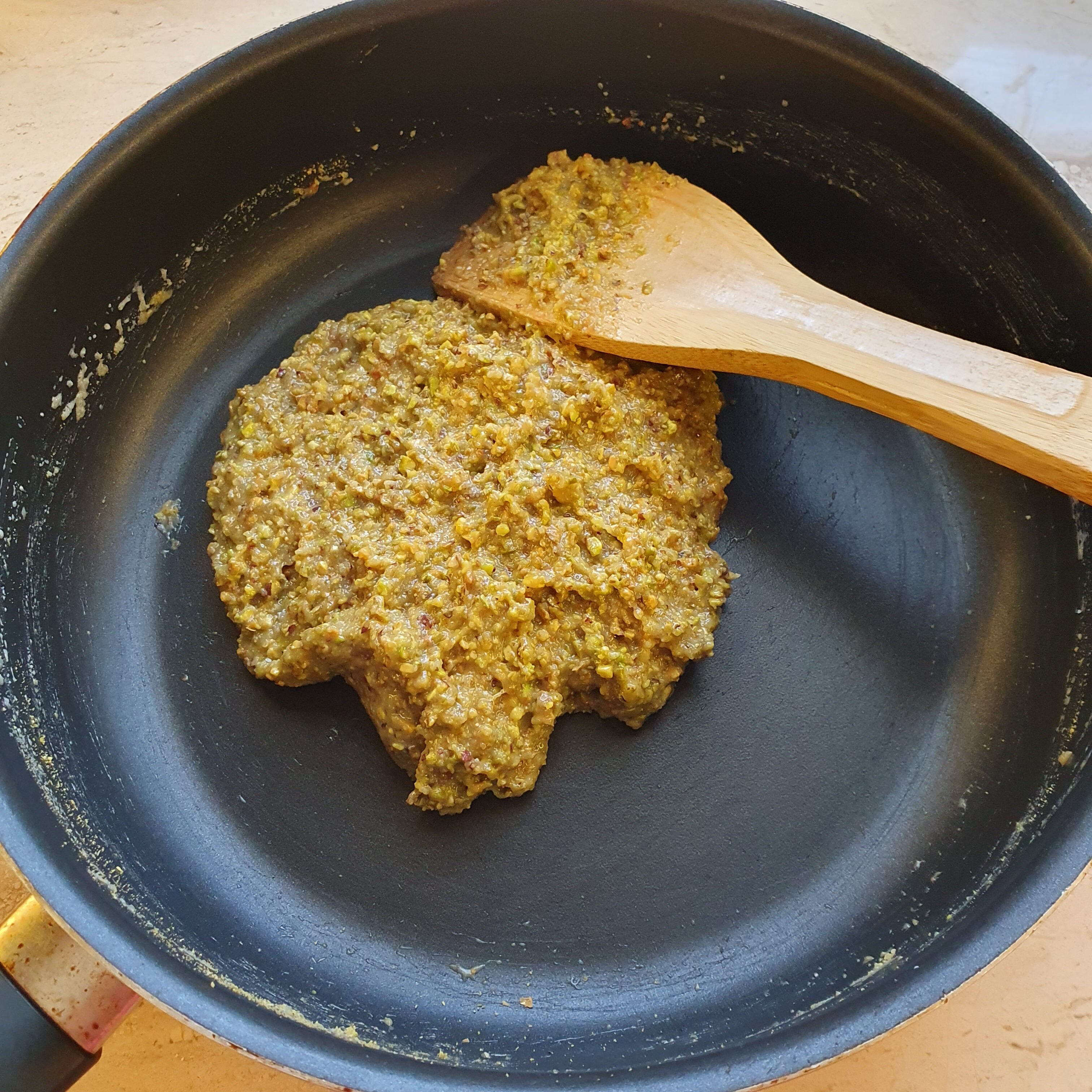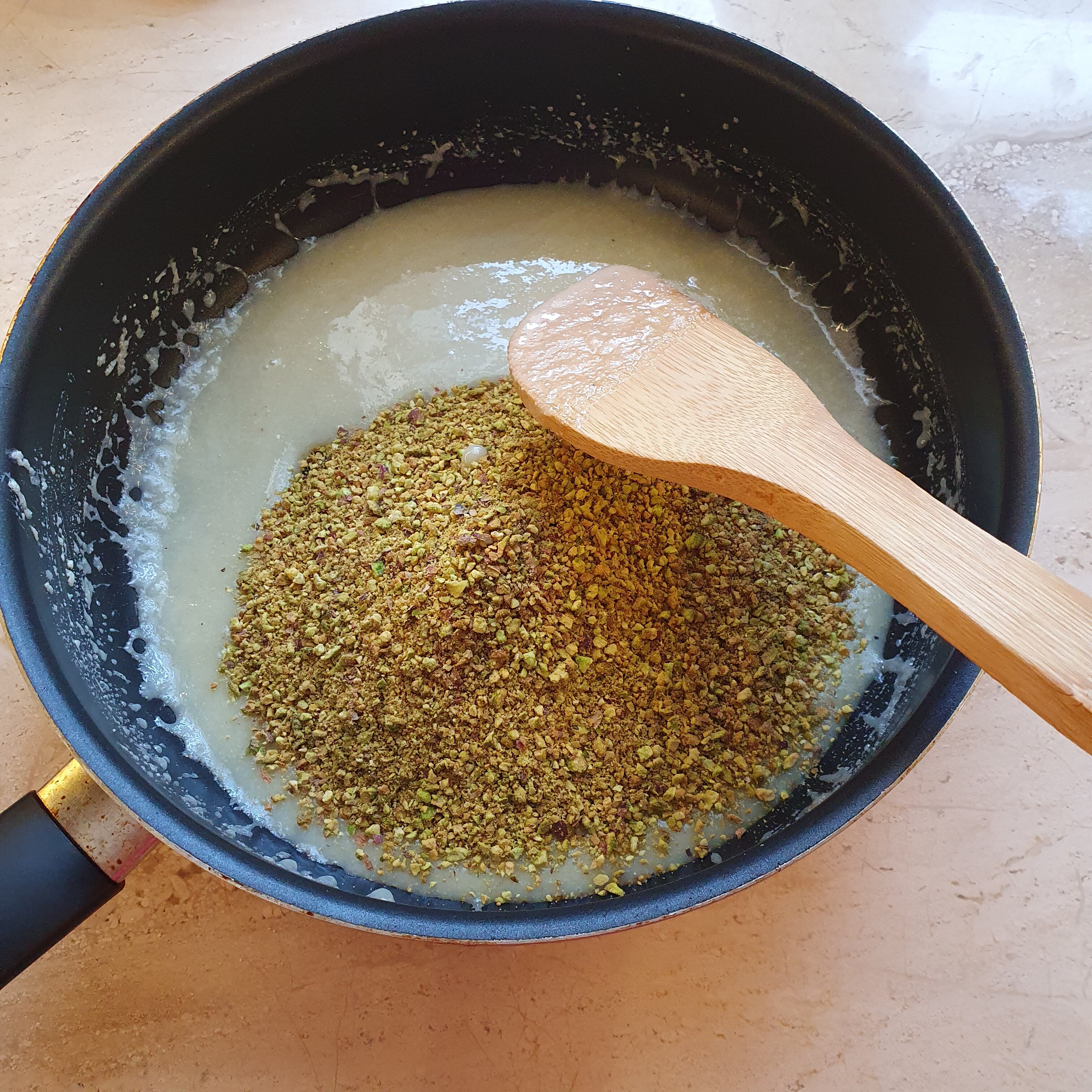 Свалете от котлона и добавете шам фъстъка. Разбъркайте.