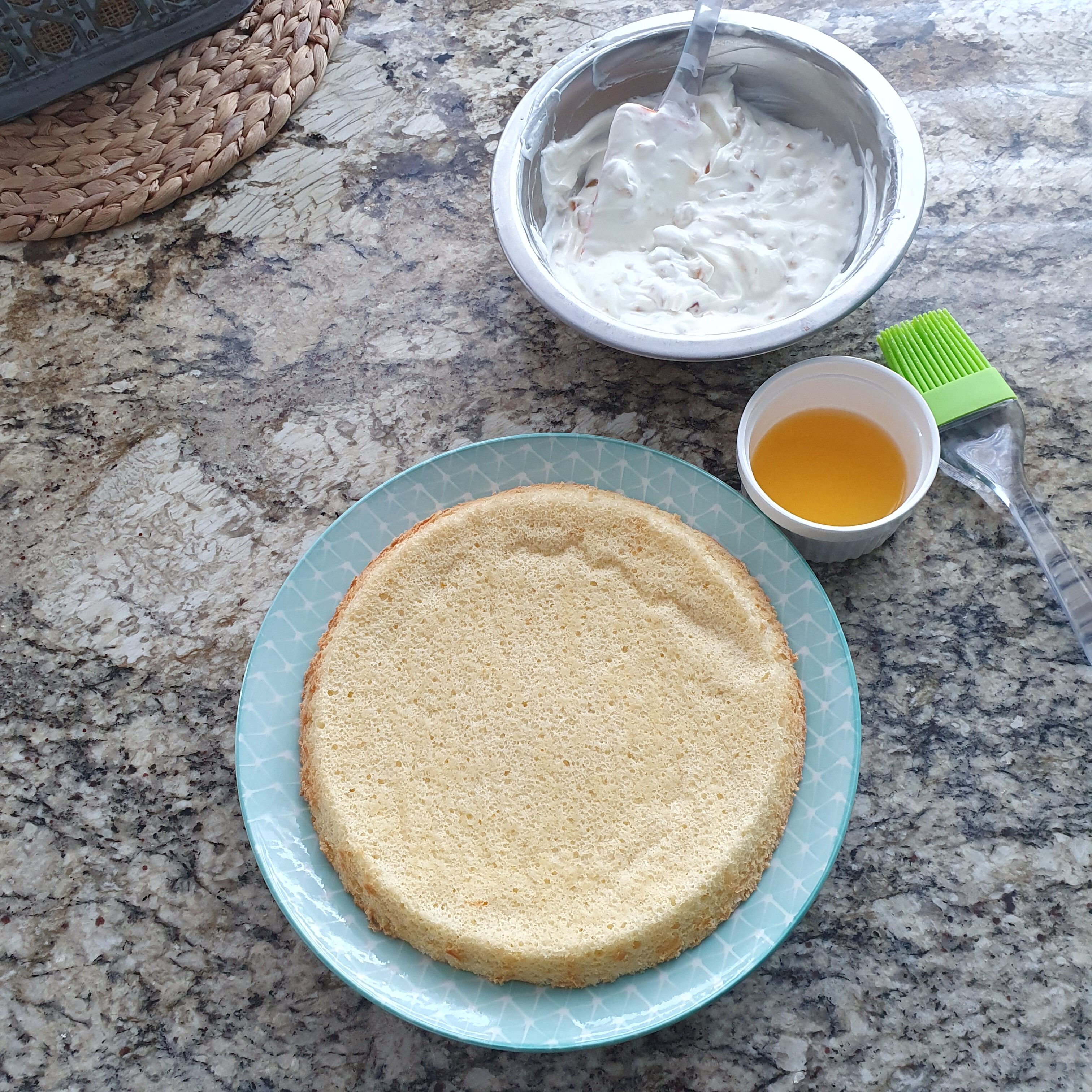 Към портокаловия сок добавяме останалия ликьор и с тази смес ще сиропираме блатовете.