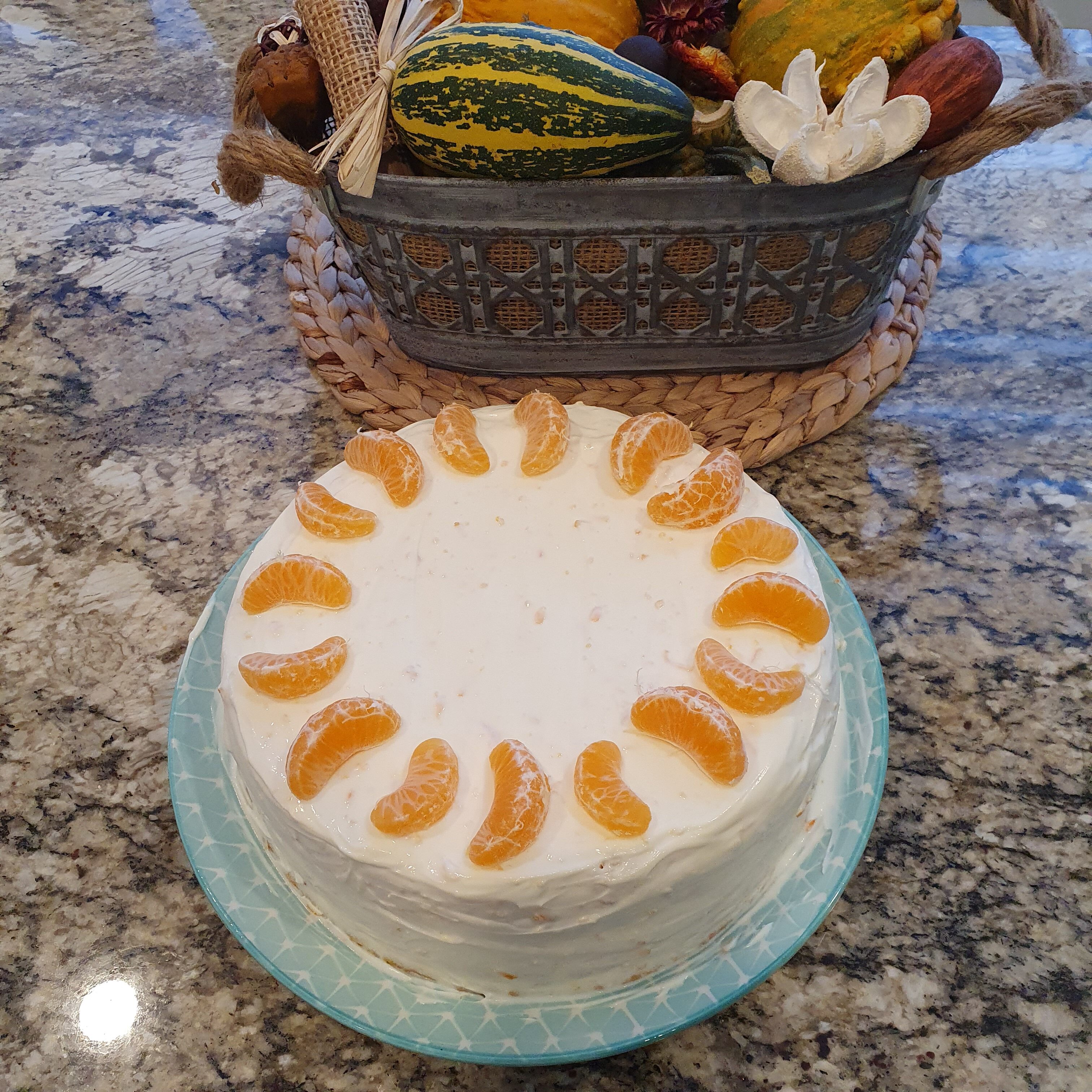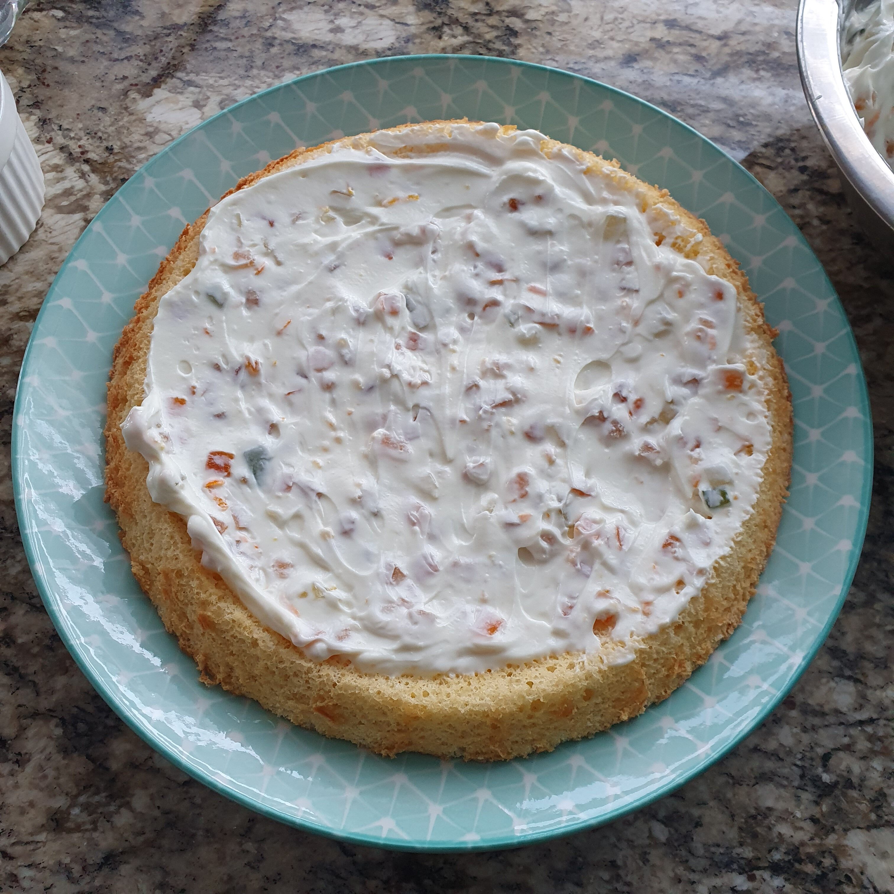 Отгоре декорираме със захаросани корички или в моя случай с парченца мандарина, или не слагаме нищо.