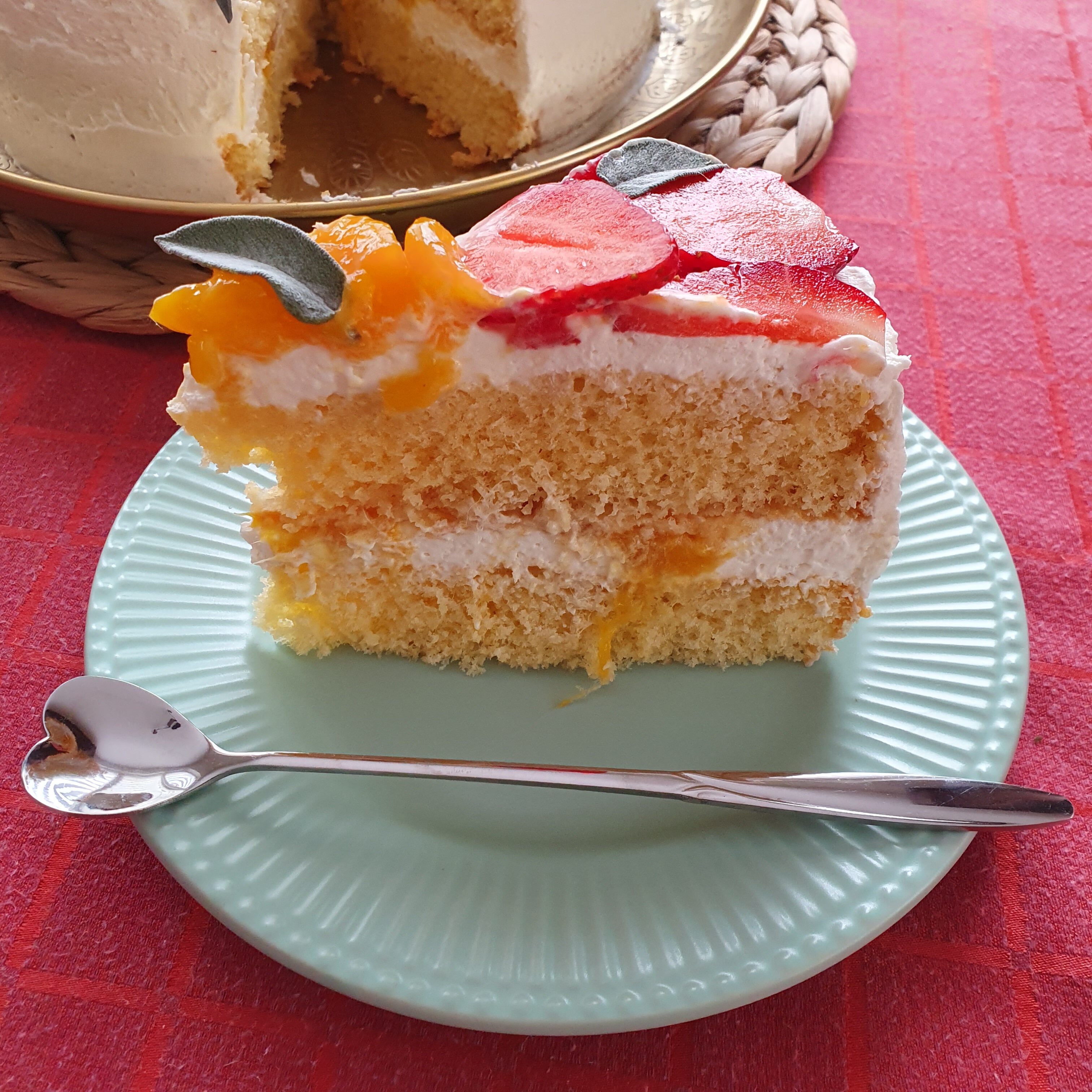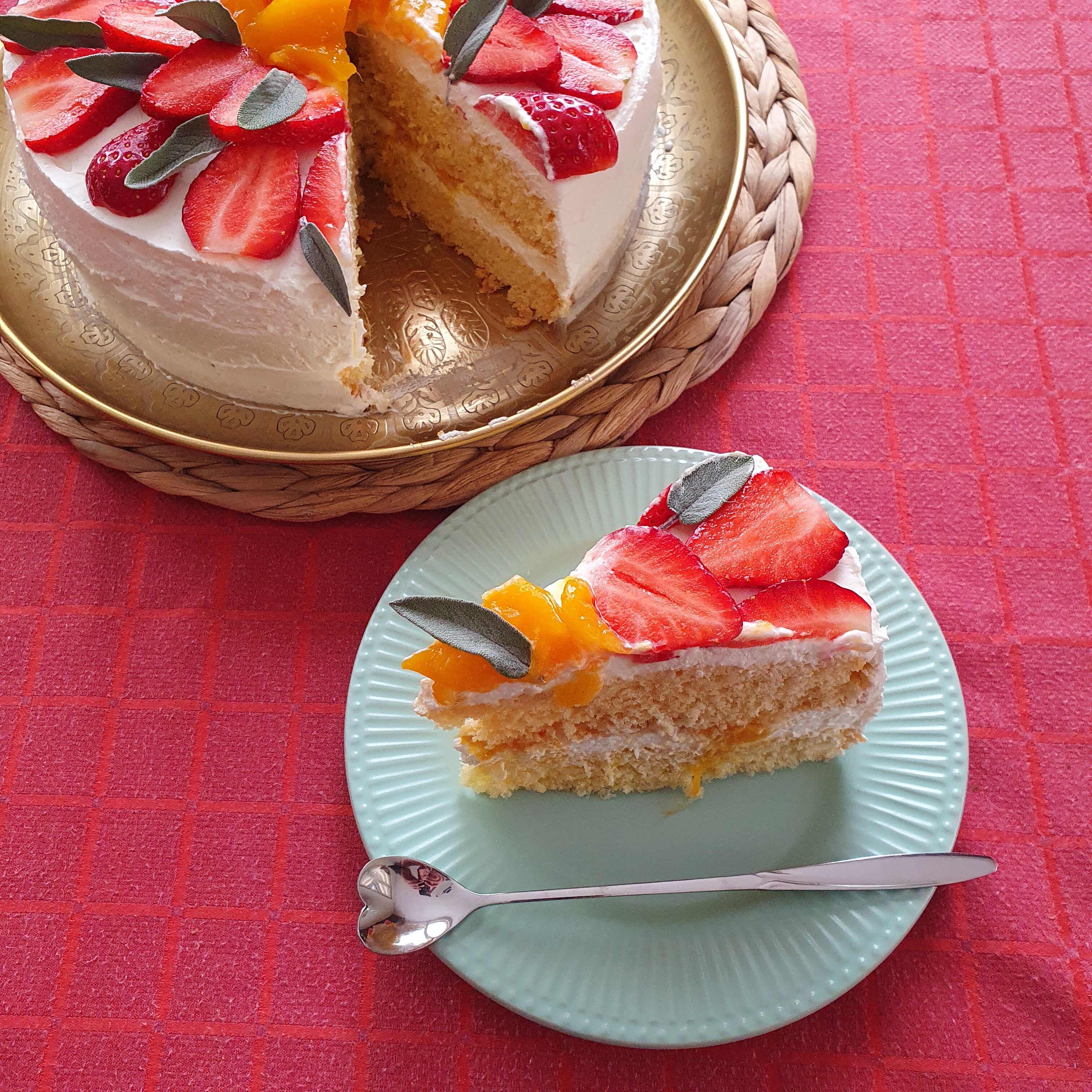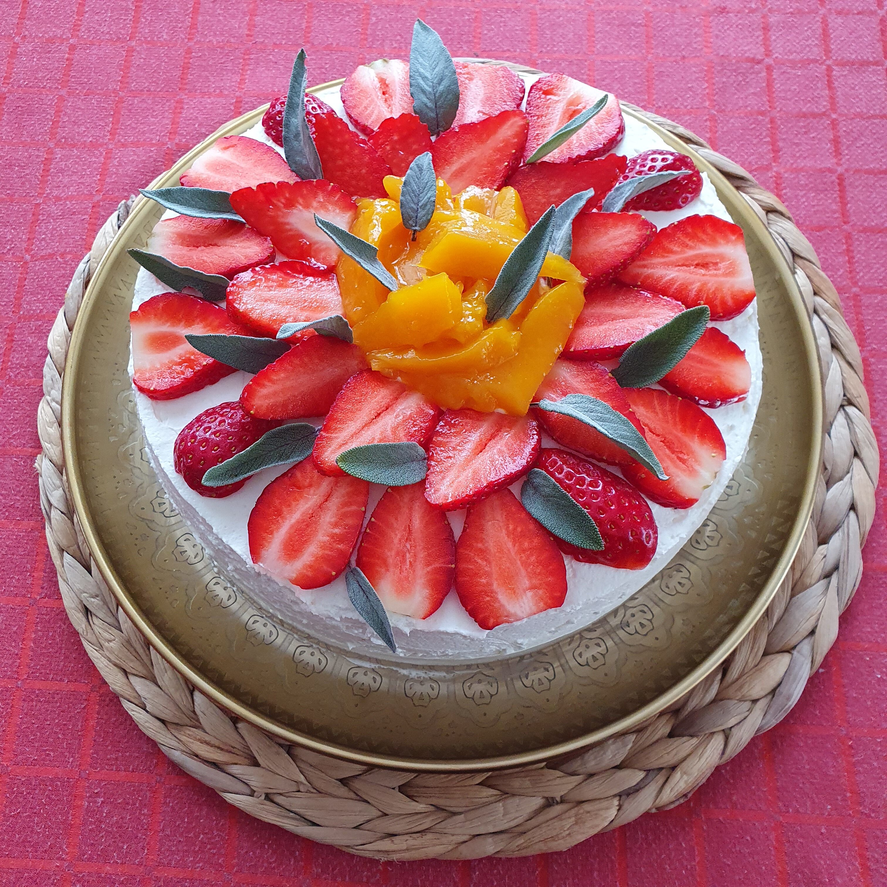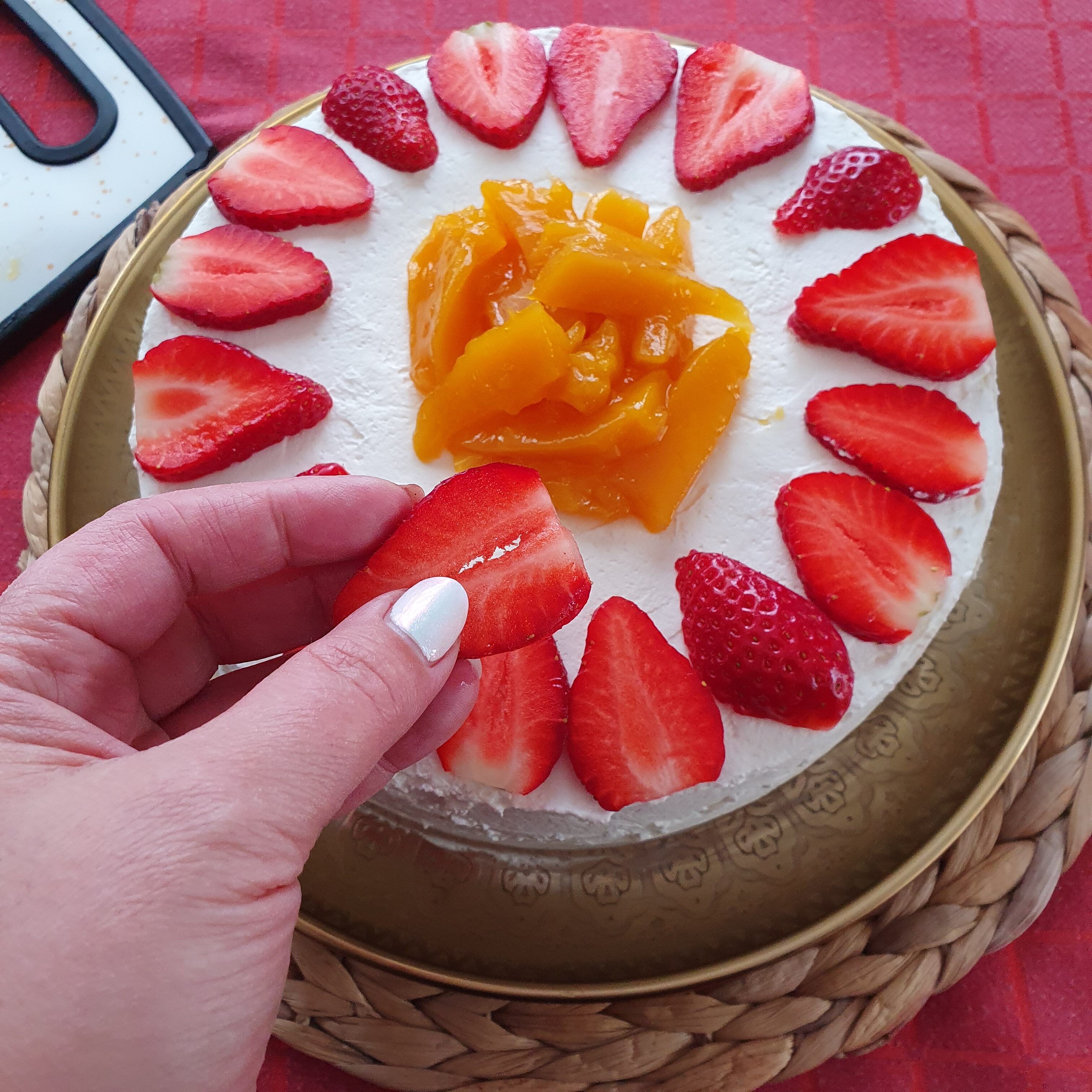 Това е всичко за тортата. Бих казала, че е лесна за изпълнение, а вкусът е много добър. Предполагам, че с прясно и вкусно манго ще е още по-свеж вкуса. Блатовете са въздушни и сочни, а кремът е лек. Аз използвах за декорация пресни ягоди. Като за февруари вкусът им беше добър. Опитайте да приготвите тази свежа торта и няма да съжалявате.