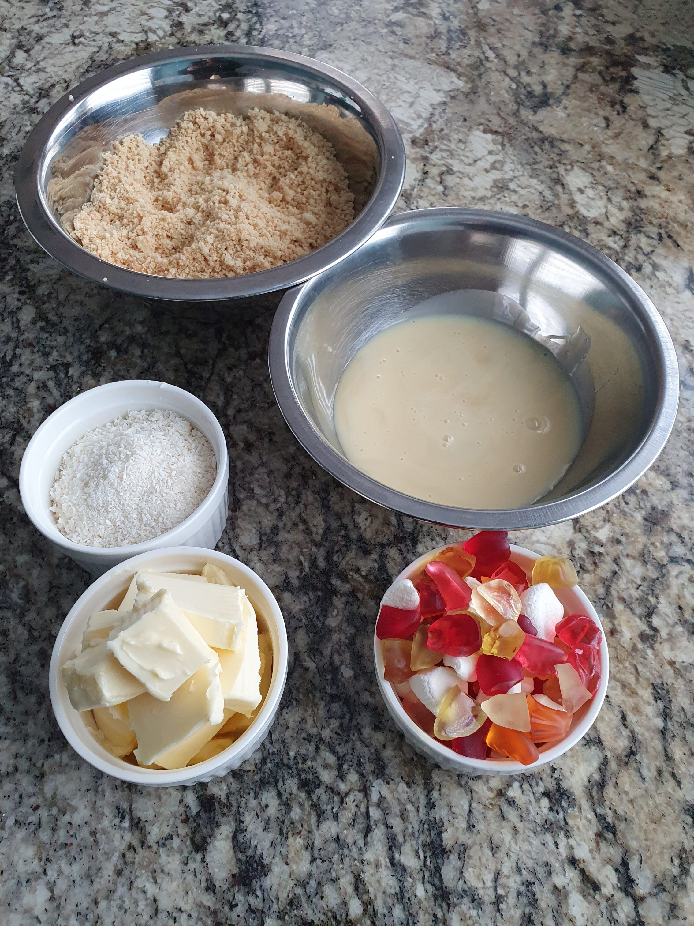 Както можете да се досетите няма много богат избор от торти и десерти в Токелау. Затова избрах един от Нова Зеландия – “Lolly Slice”. Ето и необходимите продукти: