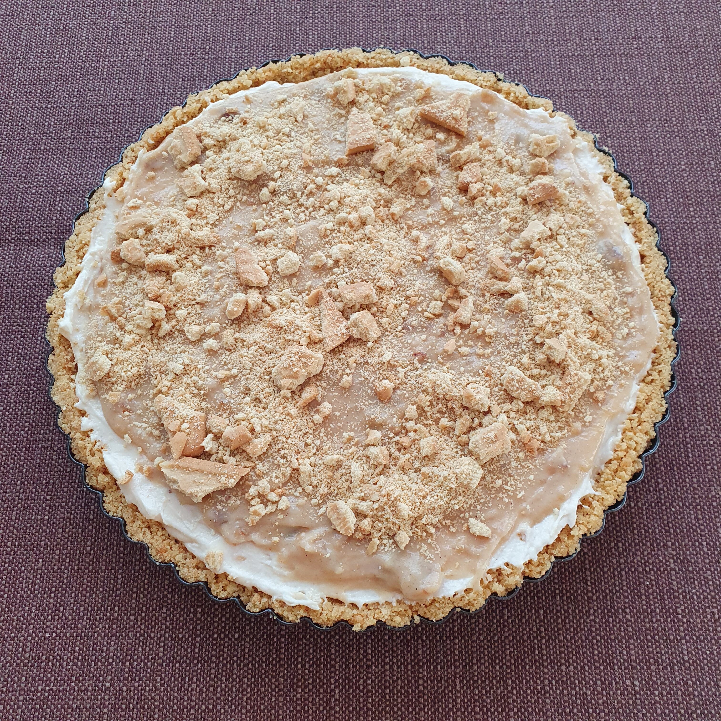 Отгоре полейте с леко загрят biscoff крем.