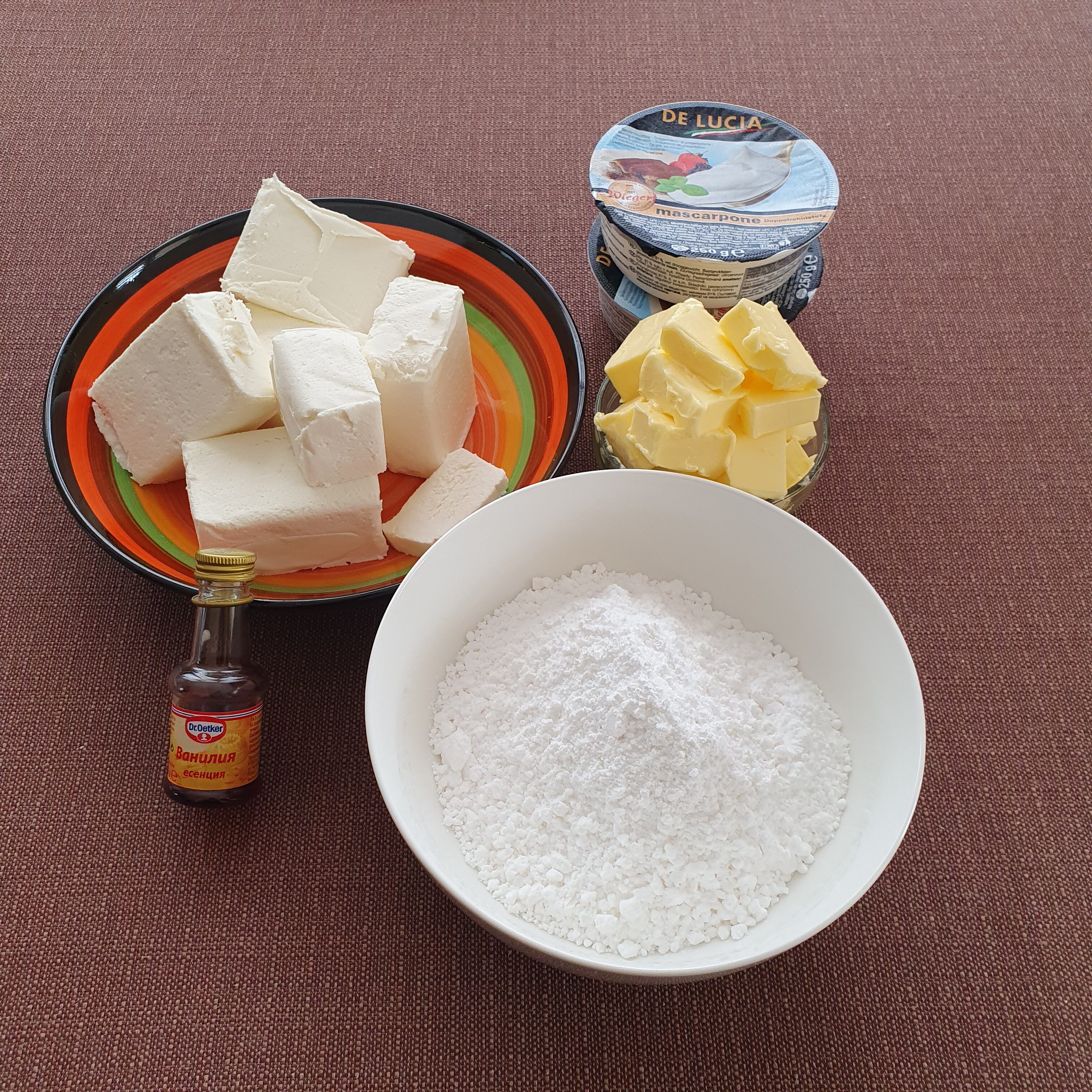 Добавяме крема сиренето, маскарпонето и ванилията и разбиваме до хомогенност.