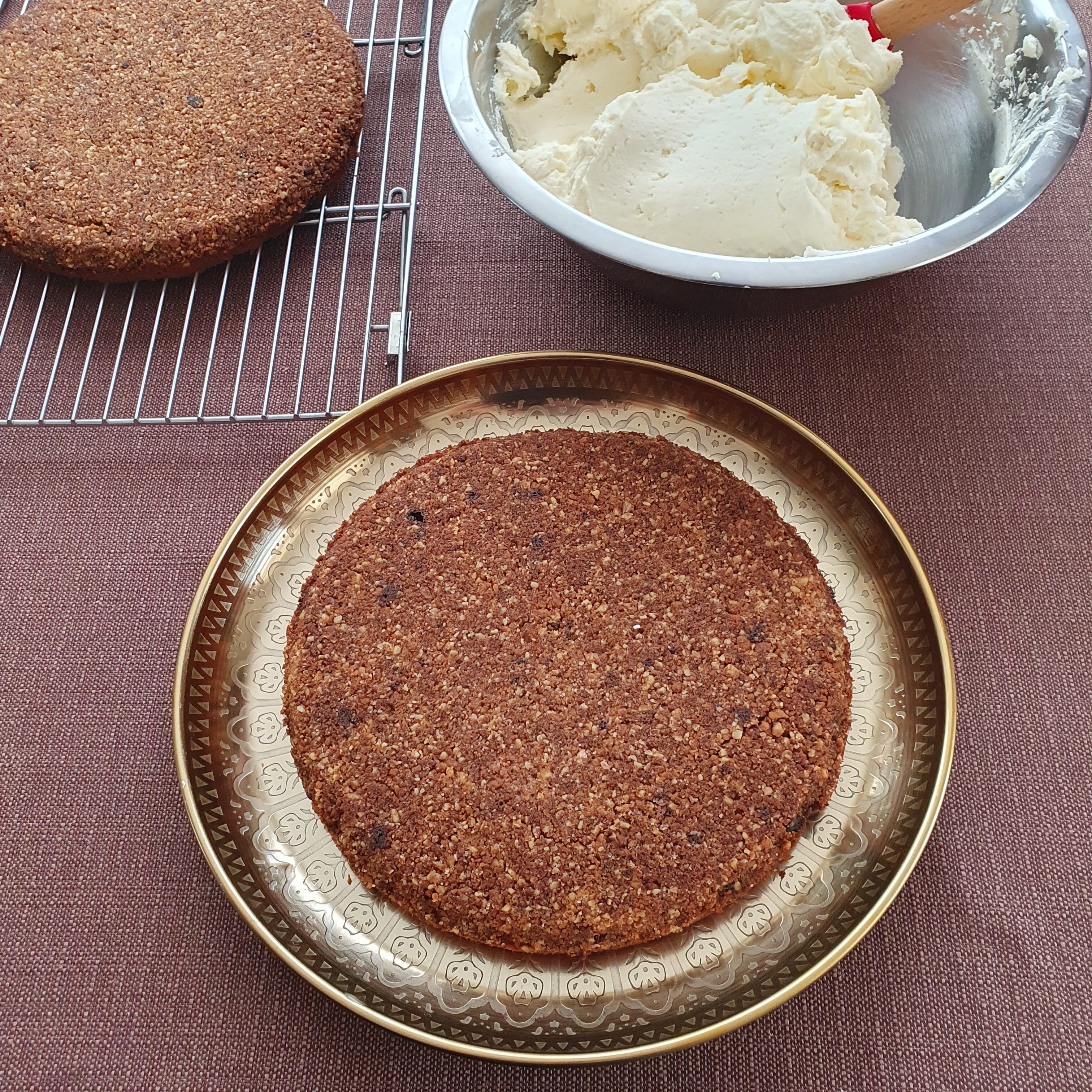 Започваме да подреждаме тортата като редуваме блат с крем.