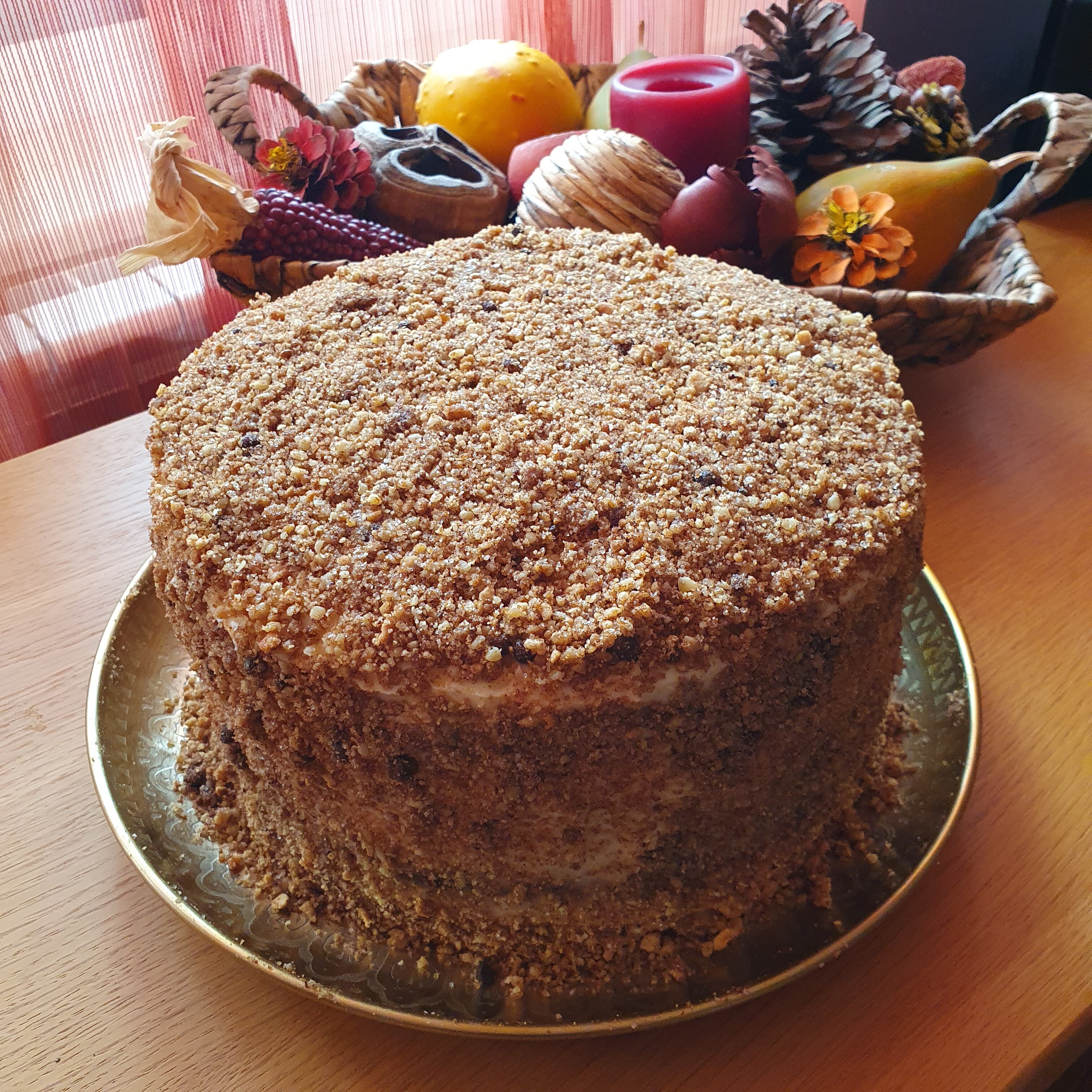 Тази торта не е лесна за правене, не е и бърза. Но за сметка на това се отплаща с невероятен вкус и аромат. Докато пекох блатовете цялата къща ухаеше на ядки, масло и захар мусковадо. Направо призовах коледния дух или най-малко есента. Тортата е с много богат вкус и не е за след вечеря. Трябва да ѝ се отдели специално внимание на протяжно сутрешно или следобедно кафе с наслада докато си говориш с близки или приятели. Горещо препоръчвам да си я приготвите. Няма да съжалявате. 😉