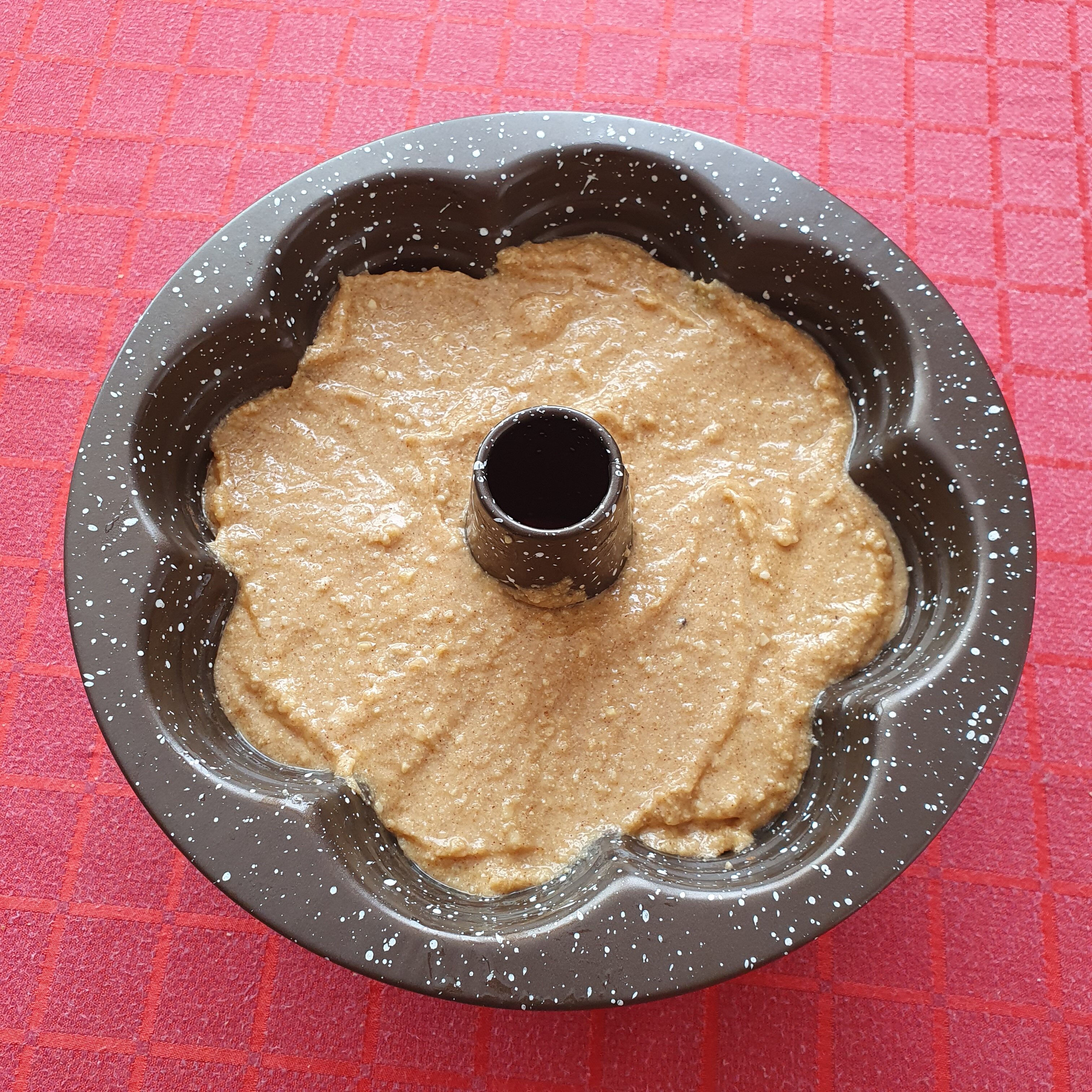 Изсипете сместа във форма за кекс и загладете отгоре.