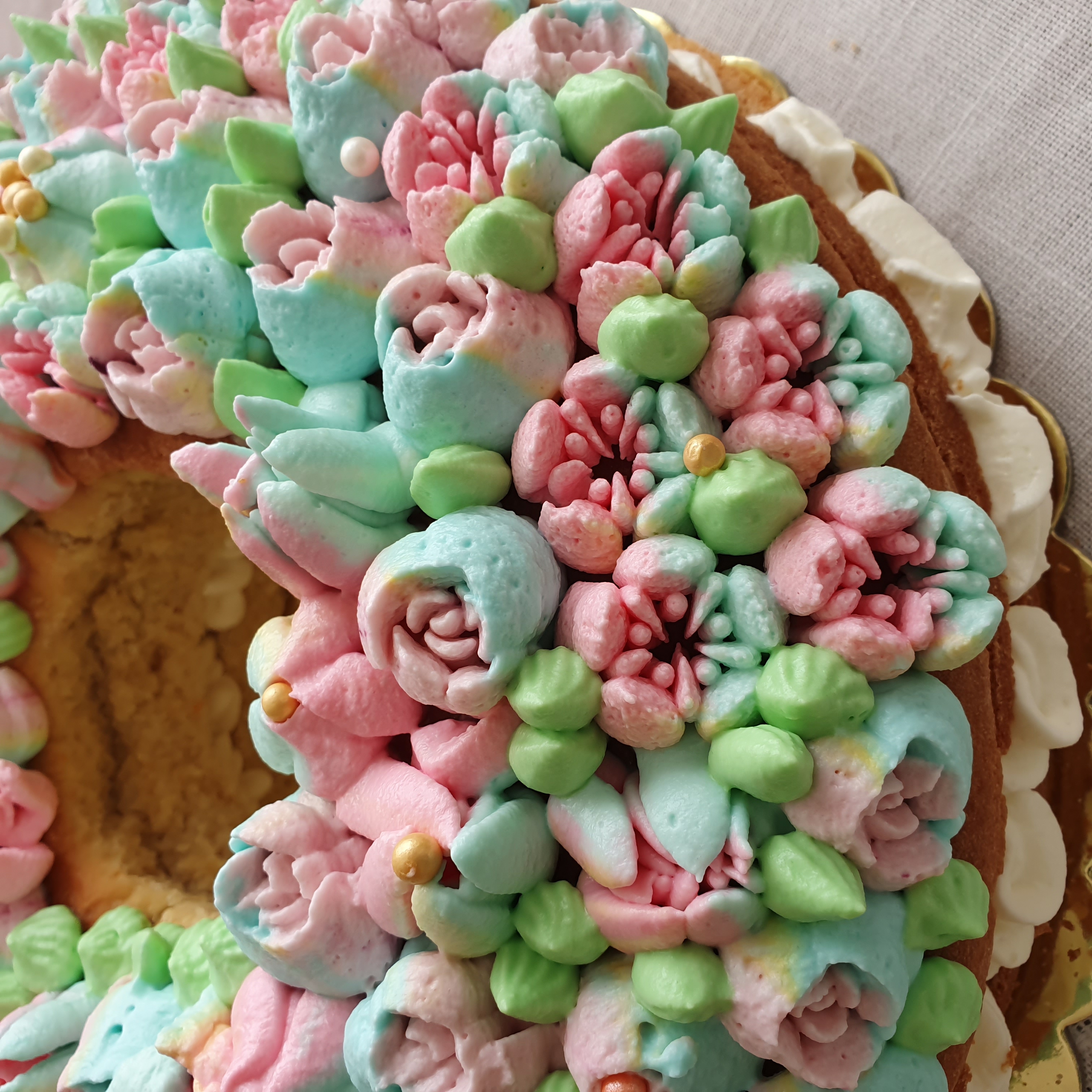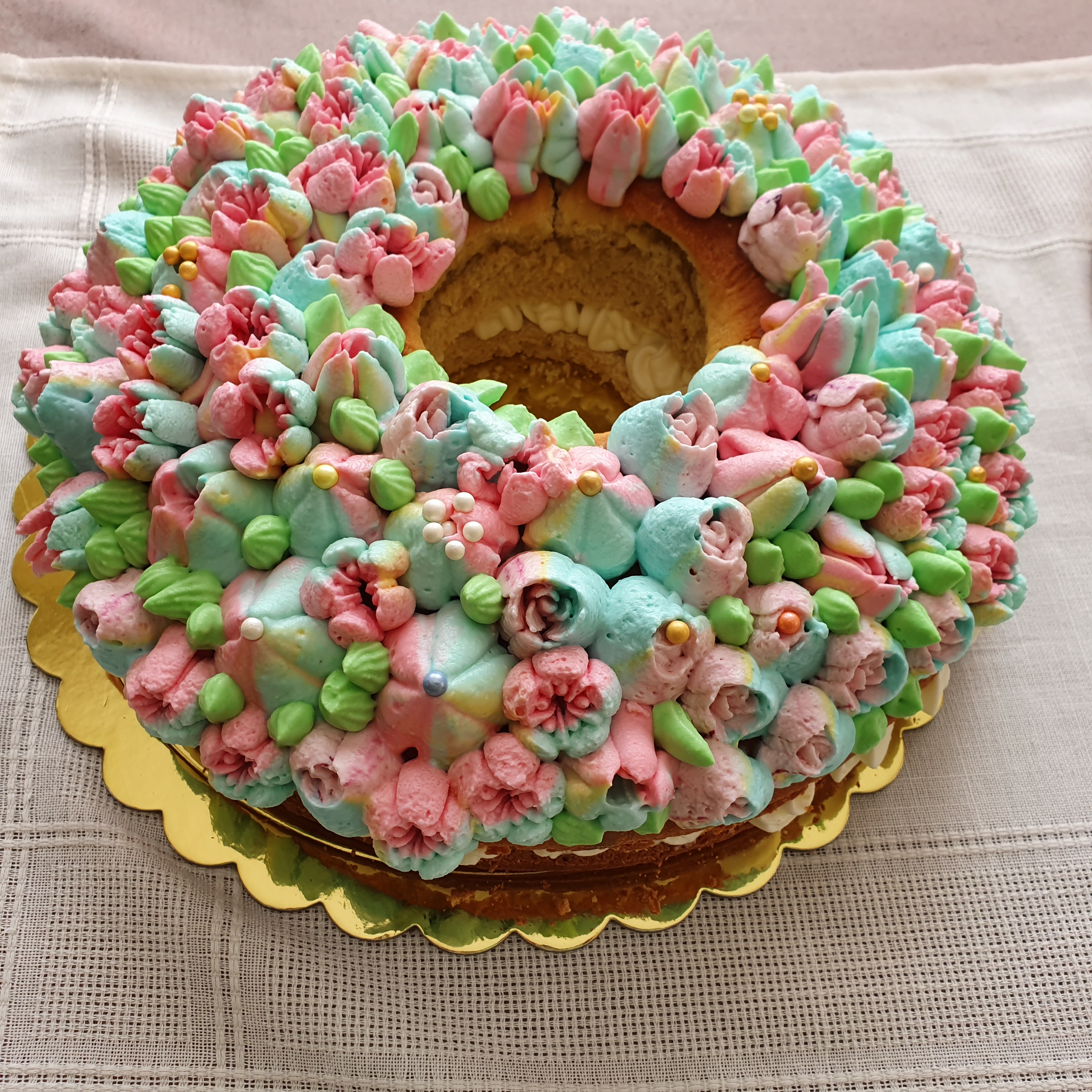 The shape of the cake resembles a crown and is traditionally decorated with sugar, candied fruits and almonds. I decided to change her slightly because yesterday was a Palm Sunday and the cake had to be in tune with the coming spring and the feast. That’s why I decorated her with flowers. 🙂 I hope this self-will not irritate you but show you that any recipe can be changed and refined even according to the specific occasion. You just have to watch the products fit. The other does not matter.