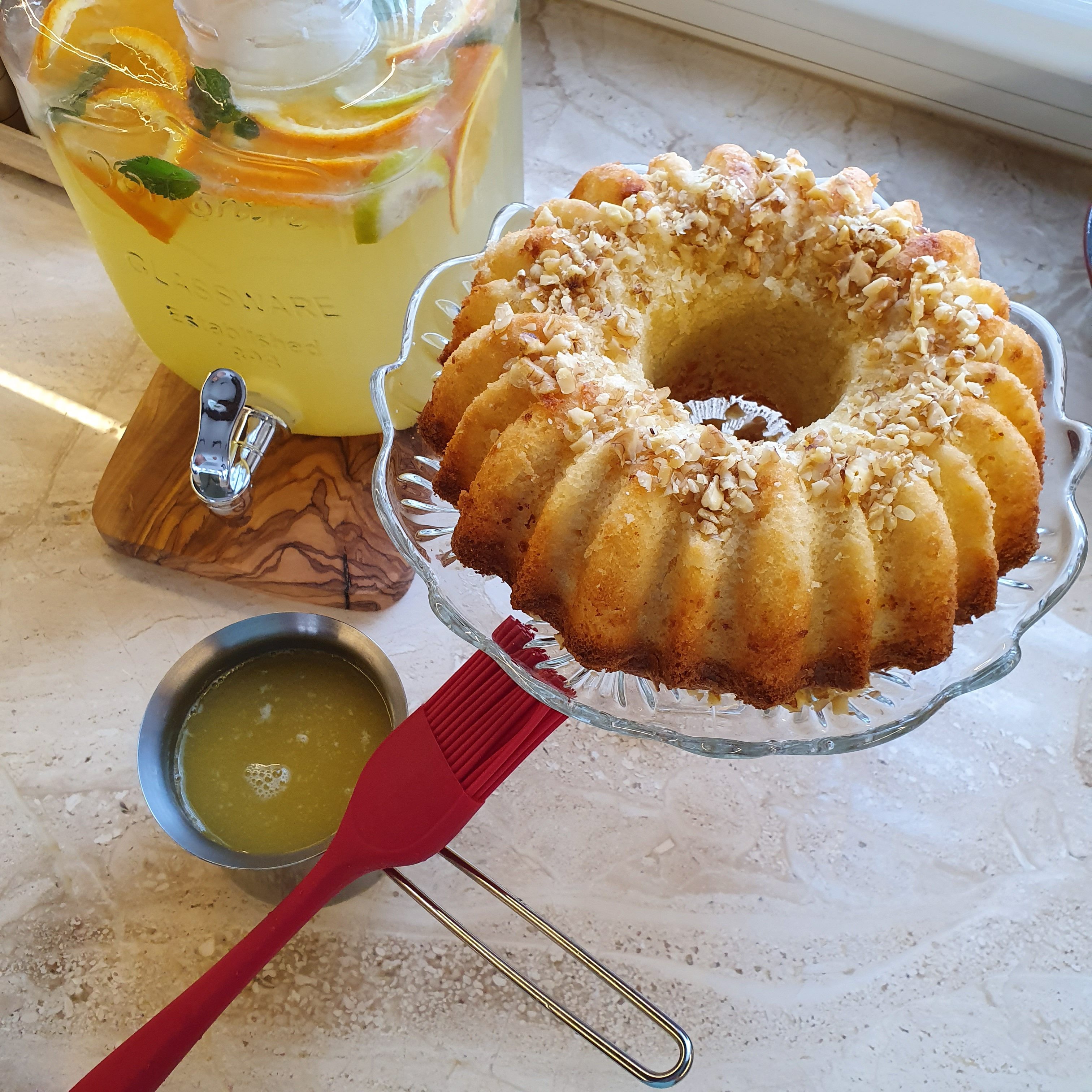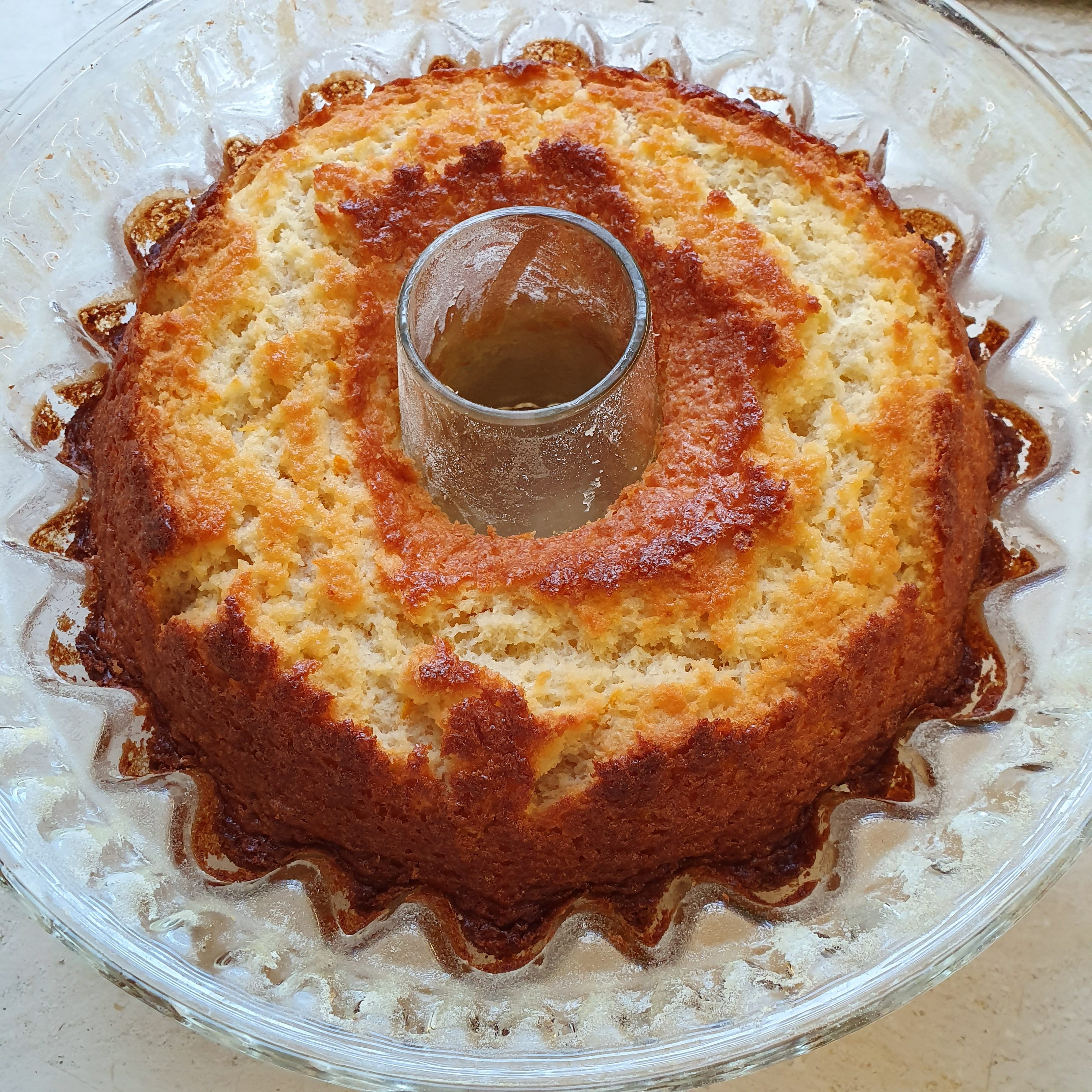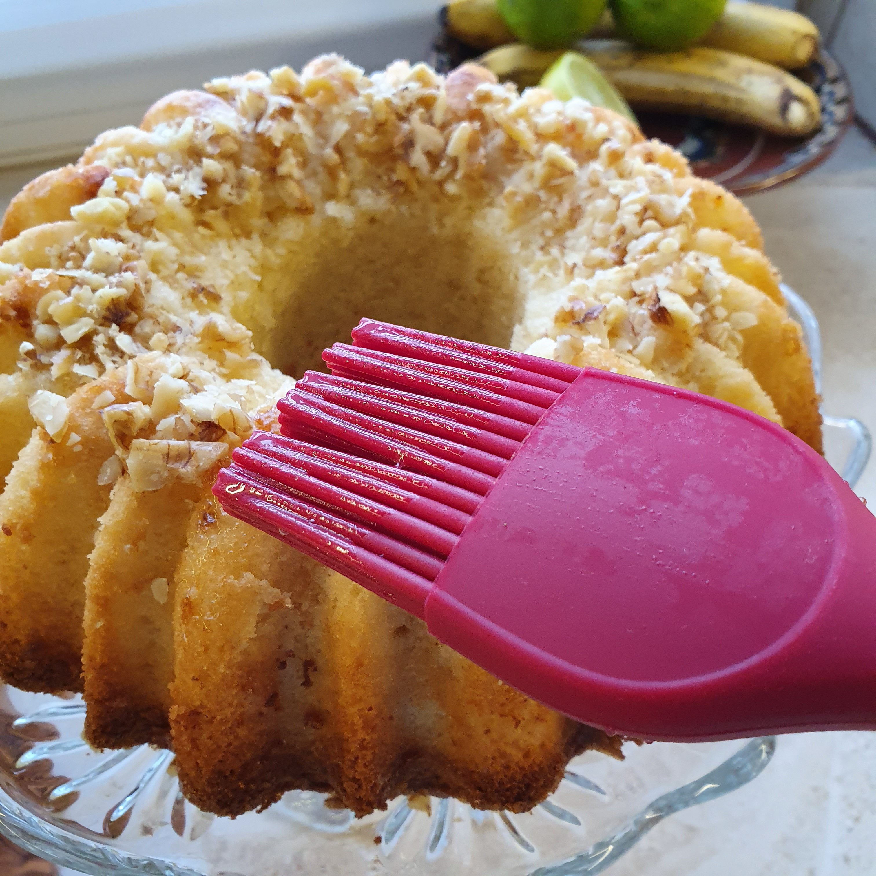 It’s time to make the topping. Over medium heat, melt the butter with the sugar and pineapple juice. When the sugar is melted, we remove it from the stove and after it has cooled slightly add the rum. When the cake and syrup are cool enough, sprinkle with the crushed kernels and use a brush to irrigate the syrup. It’s a good idea to leave the cake in the refrigerator to absorb the liquid completely and get a juicy and alcoholic pleasure.