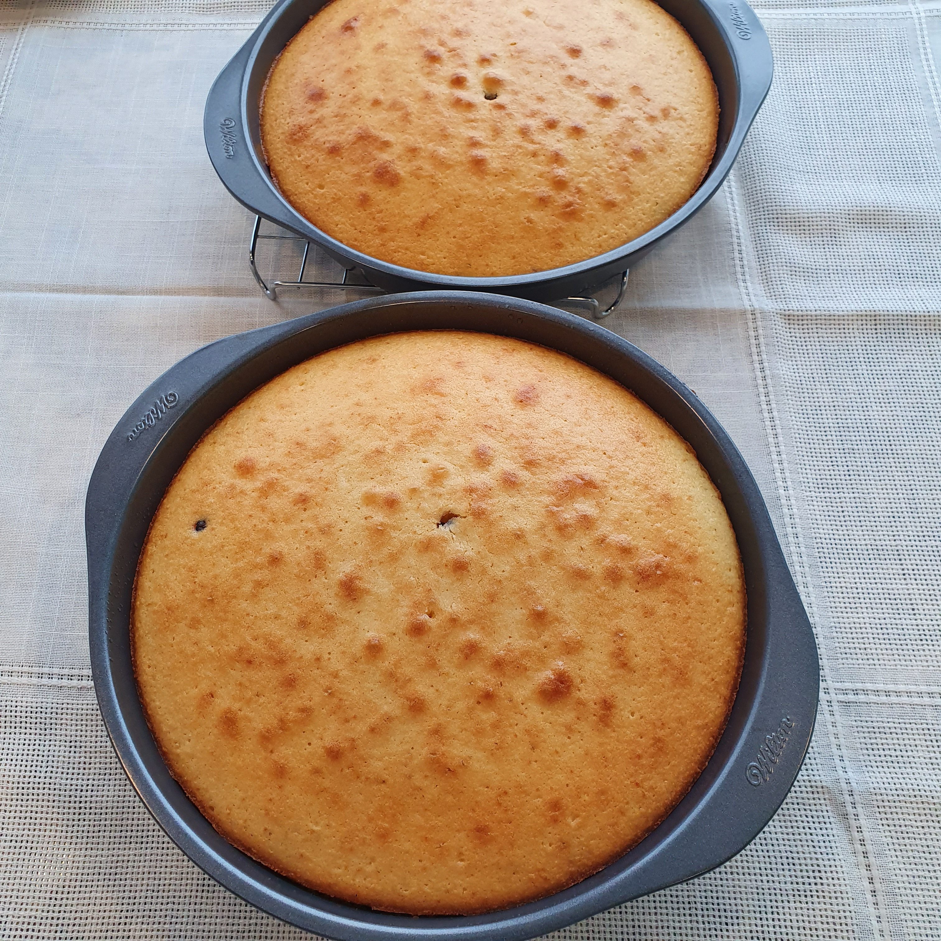 Cover two baking trays with a diameter of 22-23 cm with baking paper and grease with oil everywhere. Divide the mixture into two pieces and bake in the oven for about 30-40 minutes or until a wooden skewer stuck in the middle comes out clean.