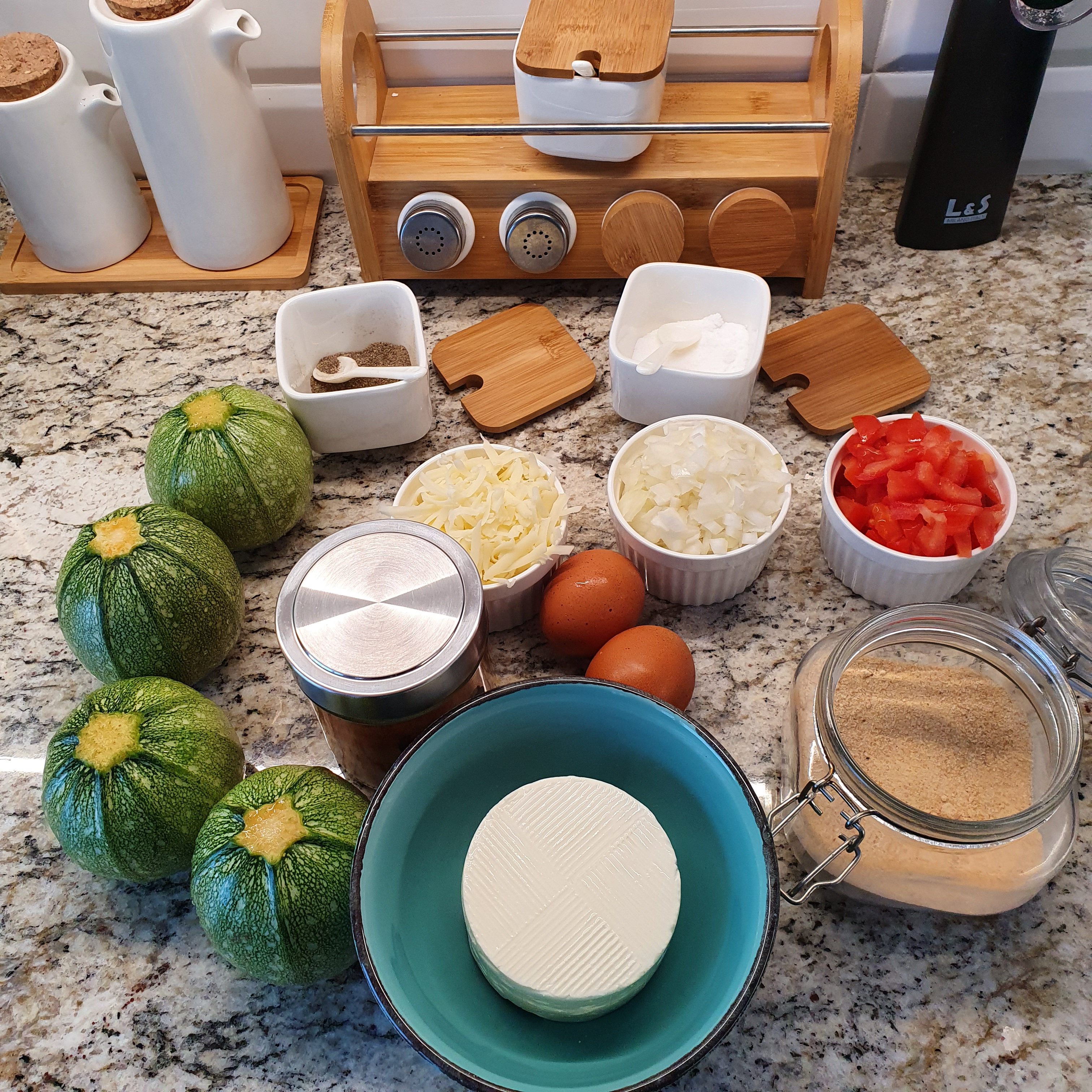 Even so, on a beautiful spring day, locked inside, I didn’t feel like sitting in front of my laptop non-stop. Because I am energetic by nature, isolation prevents me from expending energy and I have to find ways to cope. Cooking is one of them. Apart from the fact that my hobby is making cakes, I also like to cook and experiment. I have some weird zucchini that I bought from Fruit &Vegetables market – and mostly because I saw them for the first time. 🙂 Then I thought about what to do with them. I read different options for stuffed zucchini and decided on the one in which I will use eggs and cheese. Here are the necessary products that are not of a certain weight, but are the result of my experience and judgment: